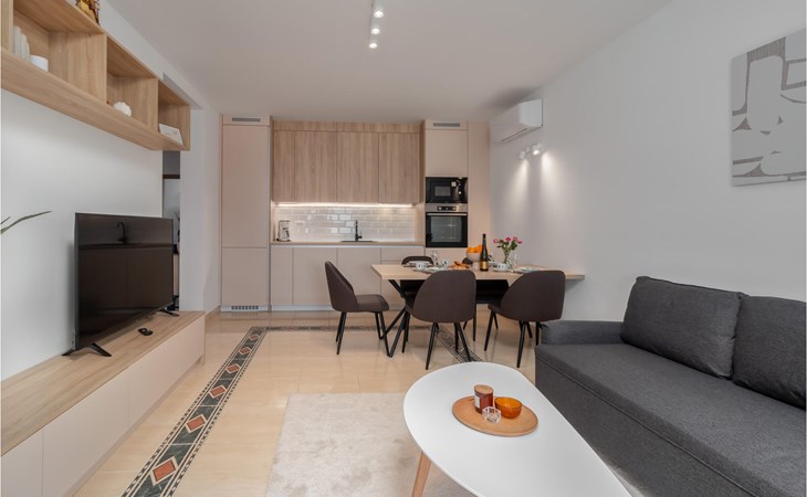 These beautiful and functionally furnished apartments are located in the small coastal town of Selce. They are in the first row to the beach and have a large terrace with a beautiful view of the sea. Here you can enjoy the first coffee in the morning or sunset. All facilities such as stores or restaurants can be found near the accommodation. Walking along the coast you will come to Crikvenica, known for beautiful beaches and entertainment. Nearby there are various opportunities for an active vacation such as hiking trails, mountain trails, Tribalj Lake and Risnjak National Park.