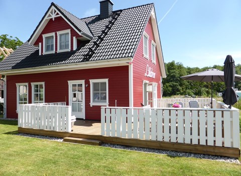 The modern wooden holiday home Seezauber impresses with its Scandinavian style and offers enough space for 6 adults and a small child. Thanks to the ridge-high open ceiling, you can enjoy a pleasant feeling of space and light-flooded rooms.