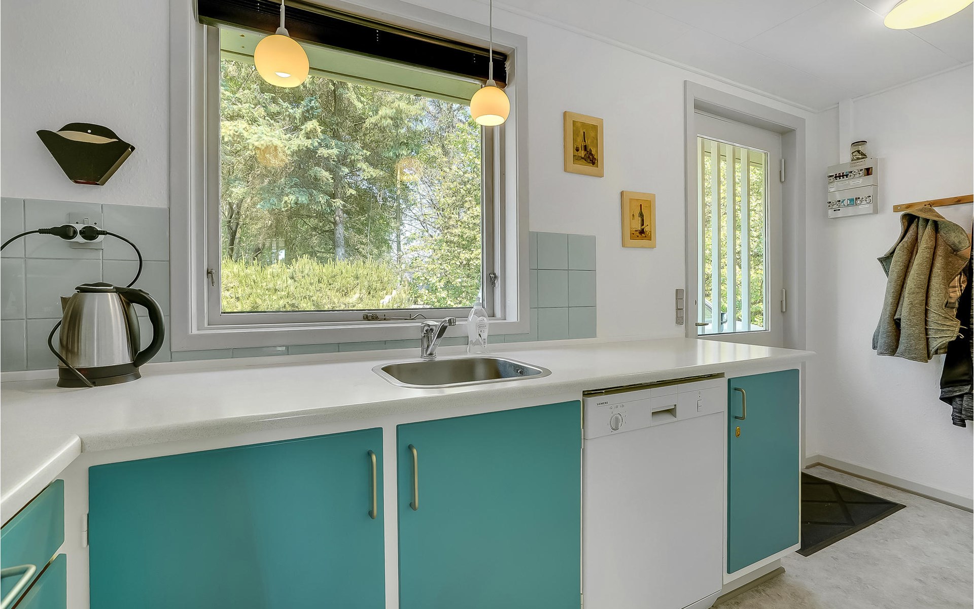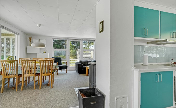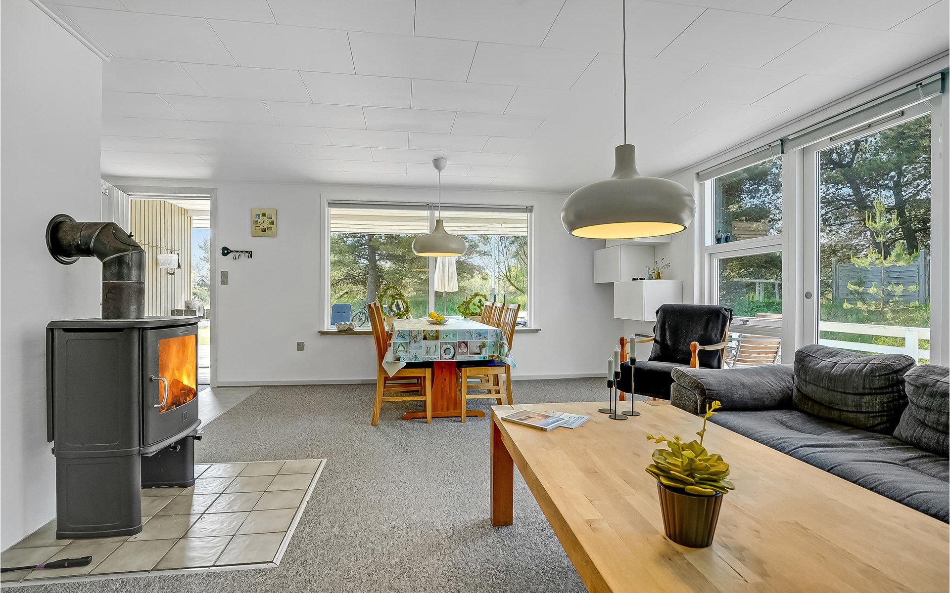 Just a few minutes' walk from the centre of Blåvand, this cosy, sand-coloured wooden house awaits you on a spacious natural plot. Here you will find everything you need for a carefree holiday with plenty of time for the family and unforgettable moments in nature. The large windows in the living room allow daylight to flood in and create a bright, inviting atmosphere. In the kitchen area, you can bake a cake together with the children, which you can then enjoy at the dining table or in the sofa corner, perhaps with an exciting board game or an entertaining family quiz.