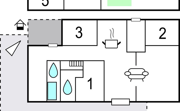 The holiday home has been completely renovated. All rooms in this two-storey house are decorated in bright colours and everything is particularly friendly and inviting. The large room on the first floor serves as the living room, where you will also find the TV. On the ground floor you have the eat-in kitchen and directly in front of it a fenced terrace where you can spend wonderful hours outdoors. From here you have a beautiful view of the mudflats and the ferry that runs regularly between Rømø and Sylt. There is a climbing frame, a slide and a trampoline in the garden. Kystvejen is to the east of the house.