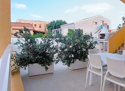 Between the Etruscan hill towns of Chiusi and Perugia (30 km each), on a hill of 700 m, lies Greppolischieto, one of the most picturesque castle settlements in Umbria, overlooking Lake Trasimeno. IUP863 is an individual apartment: a covered entrance leads directly into the living room with dining table and fireplace and a small kitchenette; from the windows you have a view of both the unique panorama of the hilly landscape and the private garden below with small pool, deck chairs and sitting area with barbecue. From the living room, a hallway leads to the two bedrooms and the bathroom. The furnishings are in rustic Umbrian style. The picturesque borgo will delight you and the small walk to the garden area (about 100m) is a picturesque experience. This apartment is something for Umbria lovers looking for peace and relaxation in a historic setting. Arrival: 16-19 o'clock. In the complex also IUP864. On request: babysitting, massages and yoga by the pool.