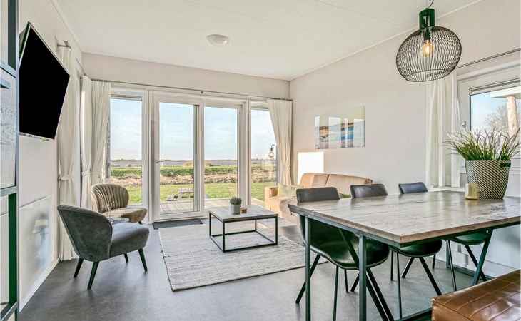 In an excellent location right on the water, this comfortable holiday home welcomes its guests in beautiful surroundings and close to many activities. It is situated in a beautifully landscaped holiday park in the heart of the Lauwersmeer National Park between the Lauwersmeer and the Wadden Sea. Make yourself comfortable with your loved ones in the bright rooms. Gather the whole family after your activities for a delicious dinner with a marvellous view and review the experiences of the day.