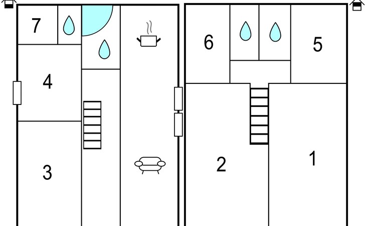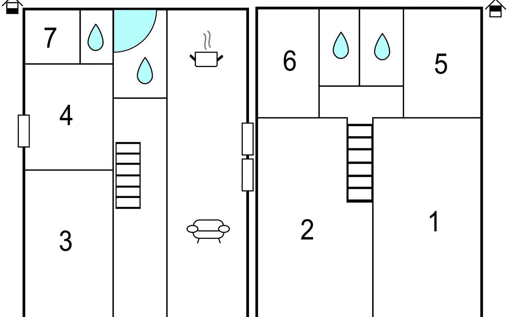 The mansion offers tasteful and functional for all ages. On the lower floor there are 2 suites with four-poster beds, one of them is connected to a room with 2 bunk beds. Everyone will find a place at the dining table in the spacious French eat-in kitchen, and the cozy living room area has a radio and even a fireplace. The upper floor is very well used with its 2 large double rooms and the 2 rooms with 2 single beds each.