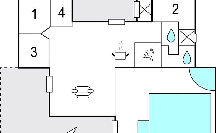 At the very back of this self-contained area, the cottage is situated on a peaceful spot and invites you with all its space for a wonderful vacation. The natural center will be the spacious living-kitchen area and in the pool room everyone will surely be busy for hours with the pool, water slide and counter-swimming system. Enclosed by coniferous trees, you'll find plenty of space to spread out on the property, especially when you come home from a long day of swimming at Saltum's bathing beach or from Fårup Sommerland amusement park.