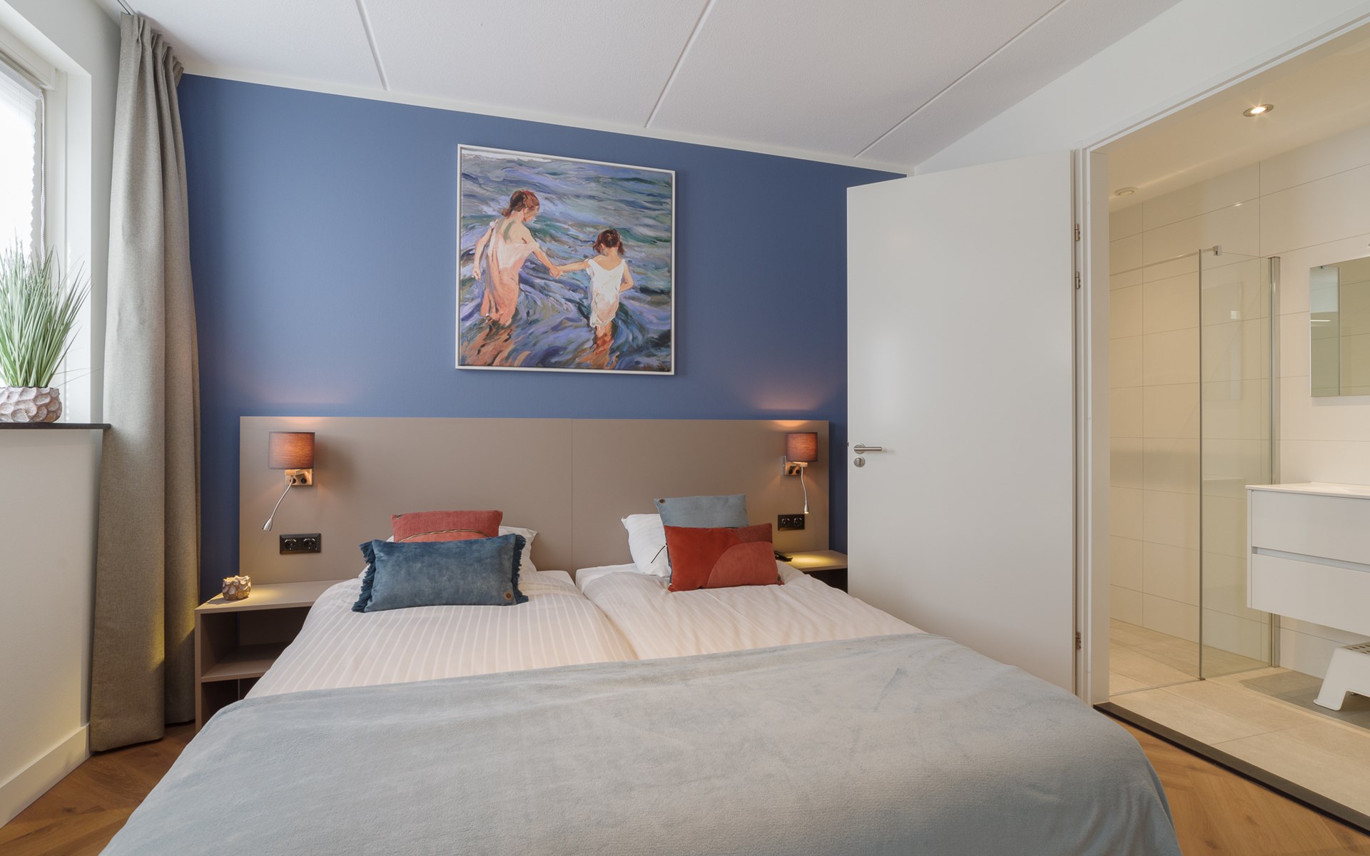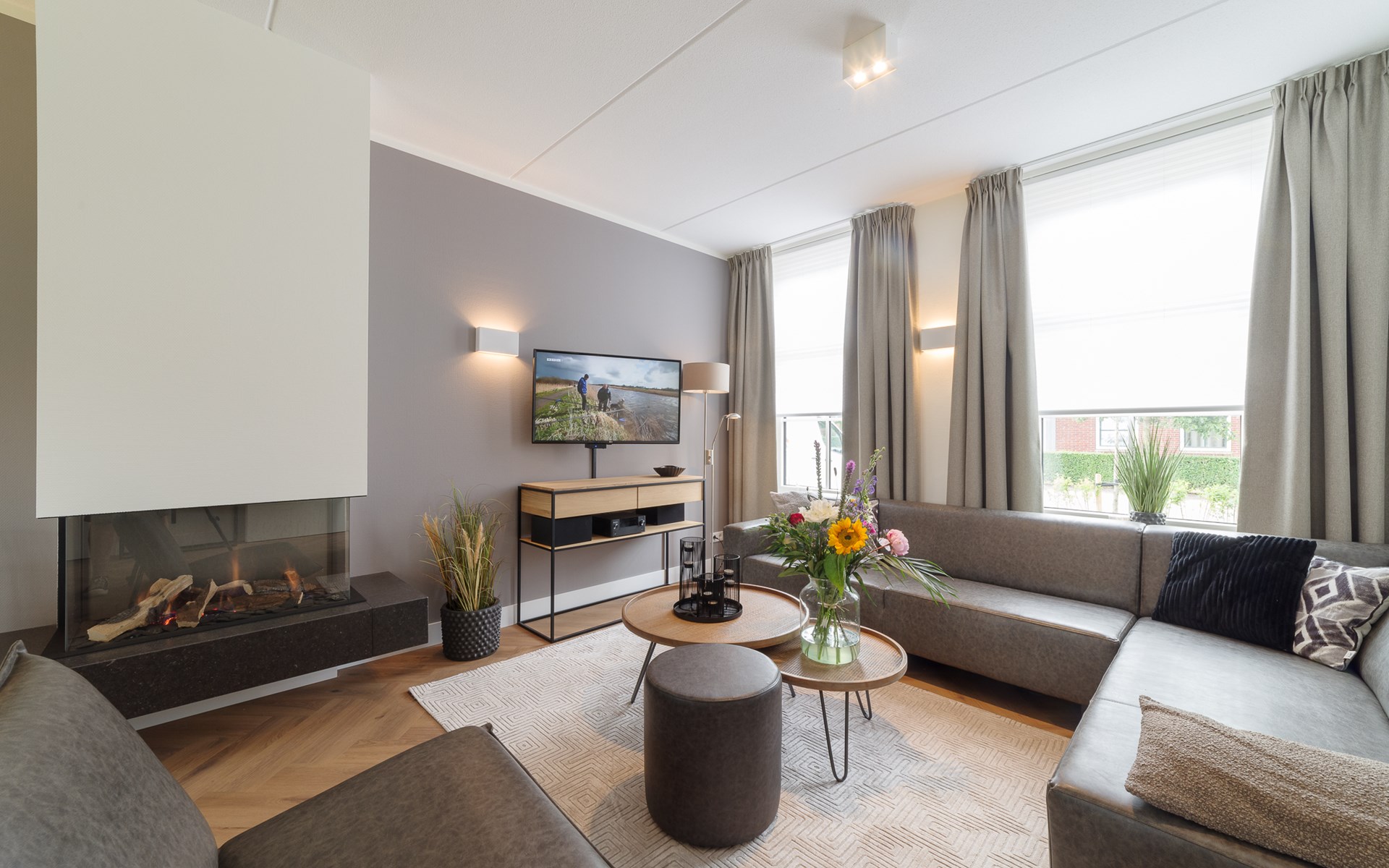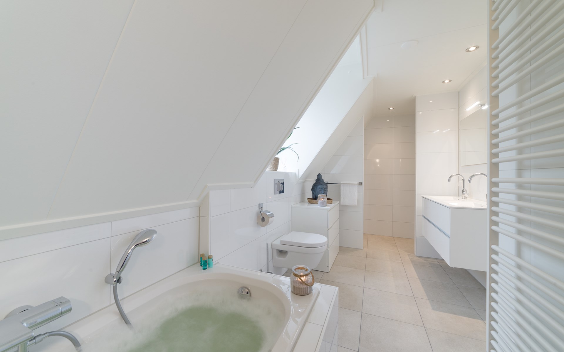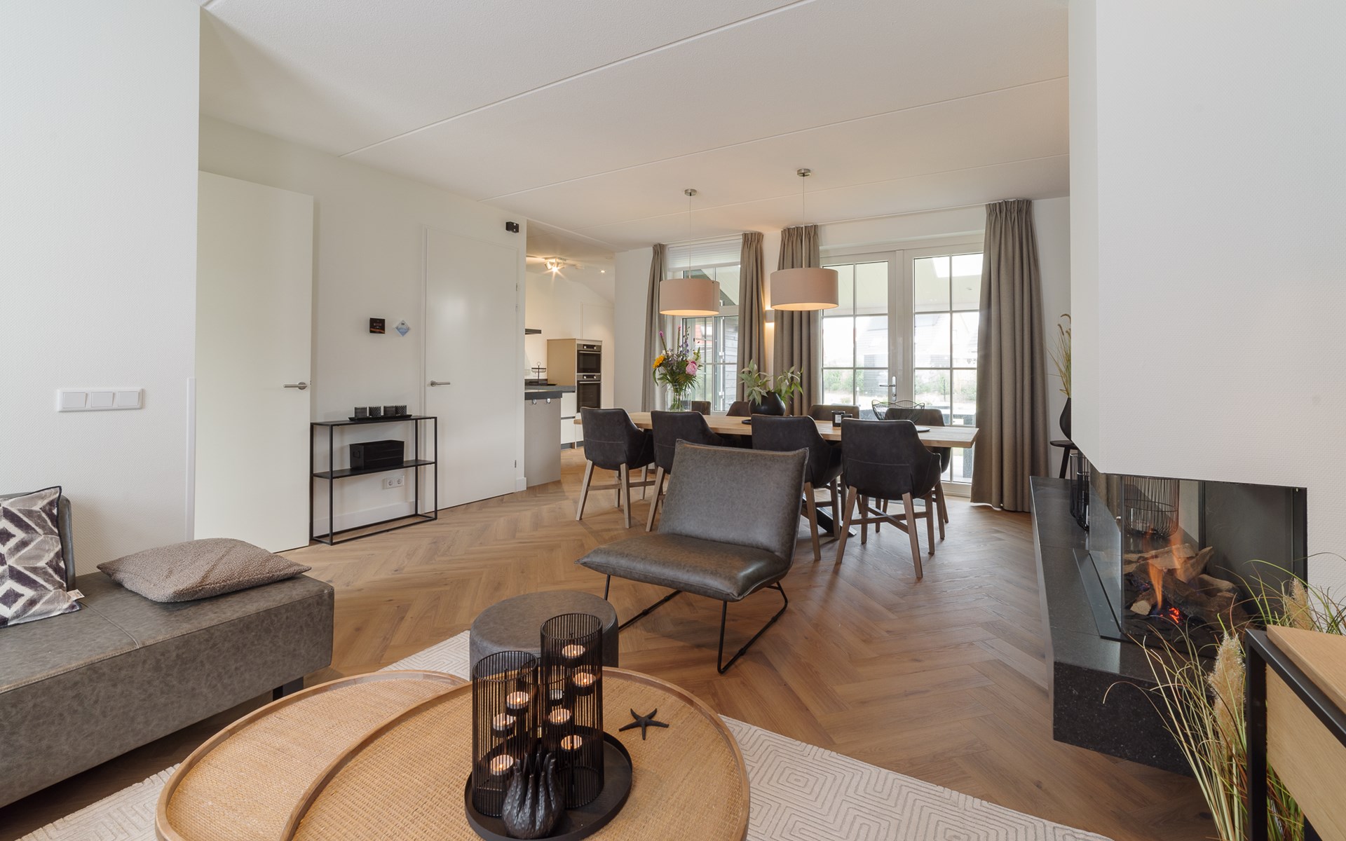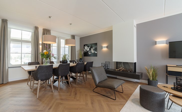 You enter holiday home Bonheur through the hall which gives access to the cozy living room with sitting area around the gas/electric fireplace, dining area and the open kitchen, which is equipped with all modern conveniences. Adjacent to the kitchen is the wellness area with sauna and shower. From this room you have access to the garden with terrace and Green Egg BBQ. Here you can smell the salty sea air of the Oosterschelde. On the ground floor there is one bedroom with an en-suite bathroom. On the first floor there are three more bedrooms and a luxurious bathroom.