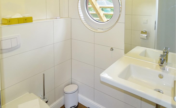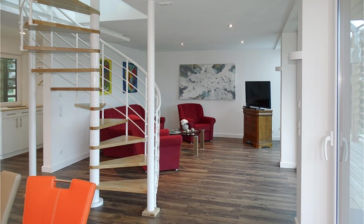 The vacation home with the special construction is modern and comfortably furnished and has two separate bedrooms.