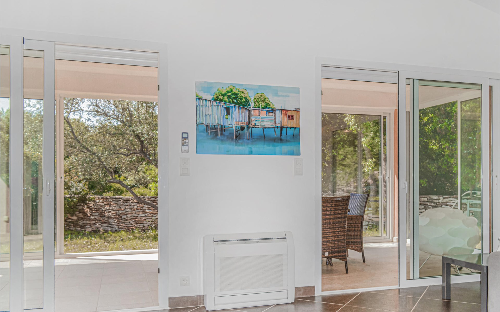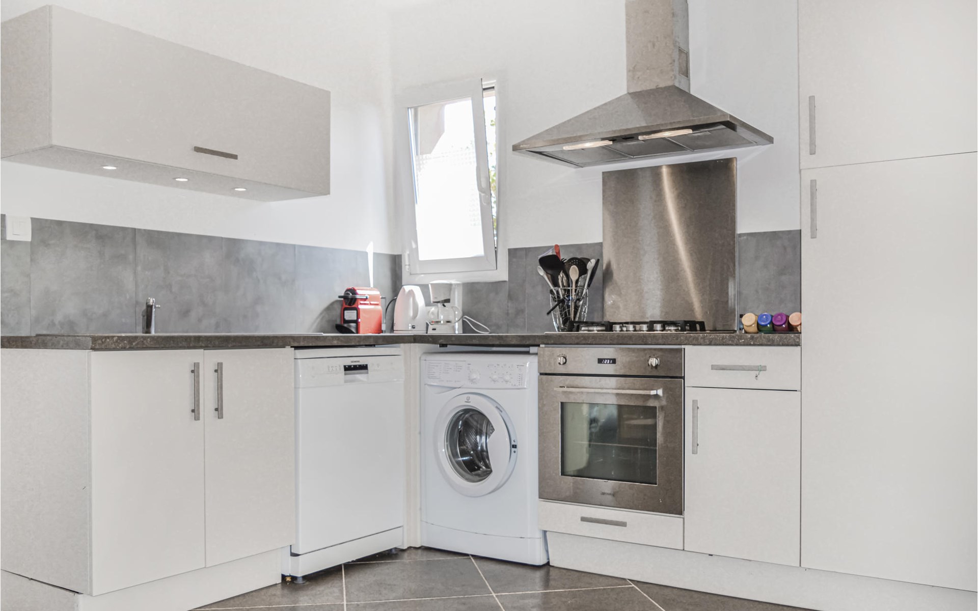 The house, lined with large windows, looks extremely inviting and convinces with its modern and pleasant interior. Relax on the sun-protected terrace or in the garden, which is very private due to the little walls. Enjoy the view of the greenery and leave the stress of everyday life behind.