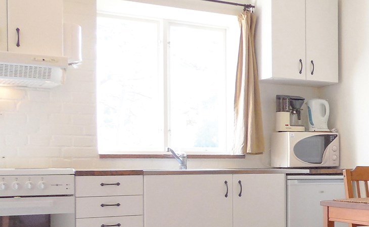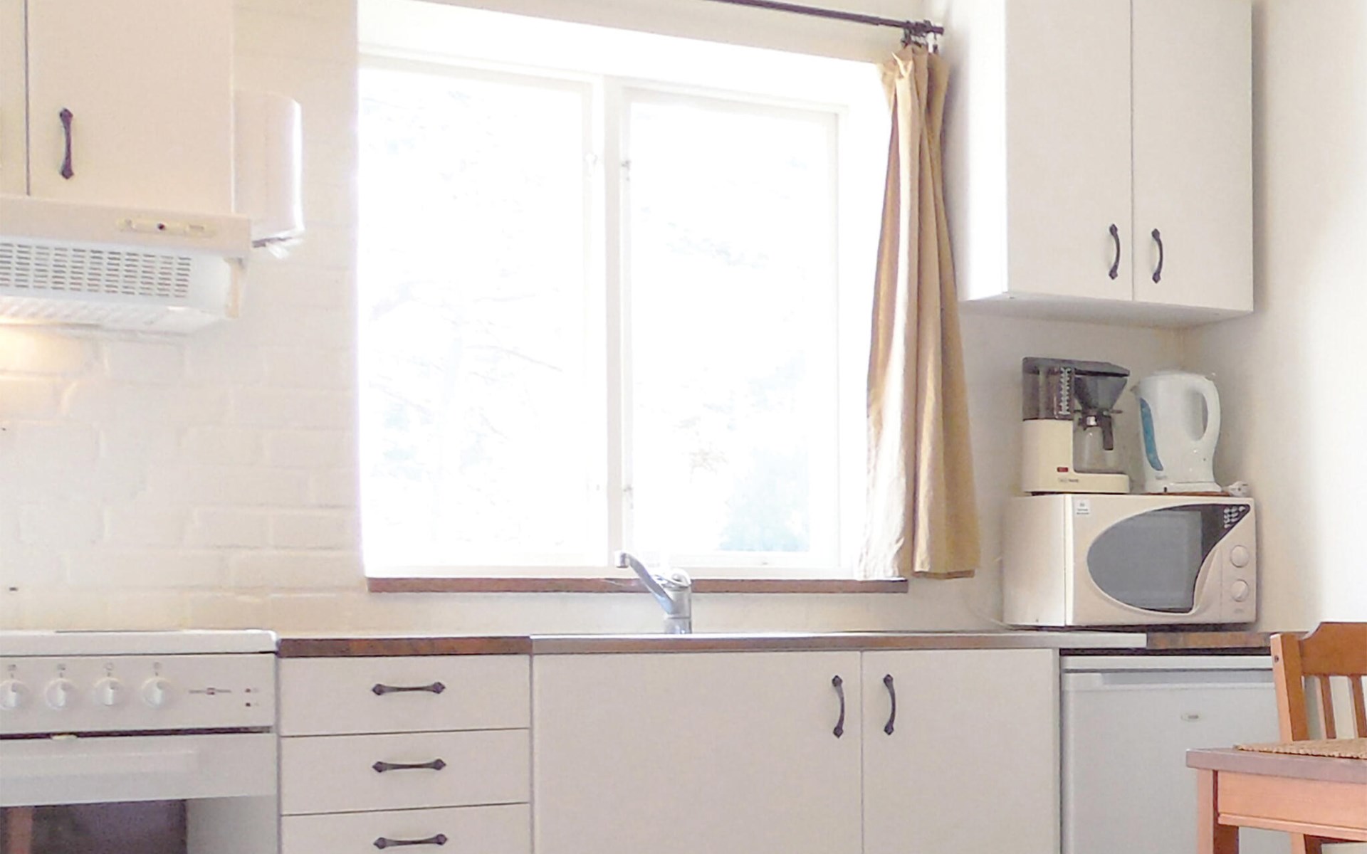 The sleeping accommodations are distributed between a bedroom and a sleeping loft, divided by a curtain. The kitchen is open to the living room. On the sheltered terrace you can sit comfortably and barbecue. The lawn is shared with several apartments in the complex Stallgården, the operator of the complex is the association KFUM.