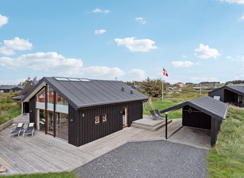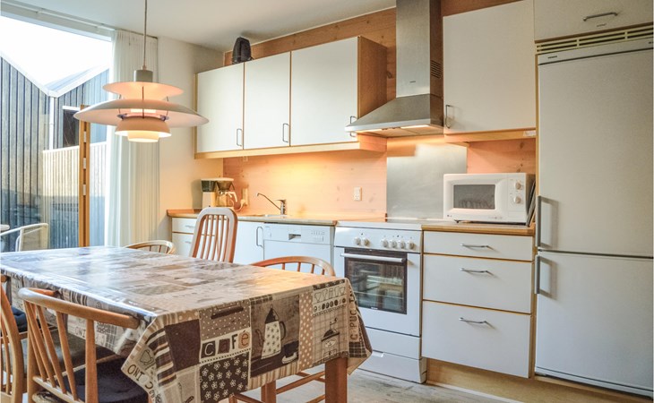 This lovely two-storey vacation home is located directly on Ringkøbing Fjord. From the house you have a panoramic view of the fjord and harbor and direct access to the lock where you can fish. The interior with solid furniture is simple, bright and stylish. From the well-equipped kitchen with dining area you have an exit to an enclosed courtyard garden. On the second floor is the living room with exit to the balcony in front. From both living room and balcony enjoy the excellent view of the water and surroundings. The location between the sea and the fjord offers you many varied possibilities to experience nature.