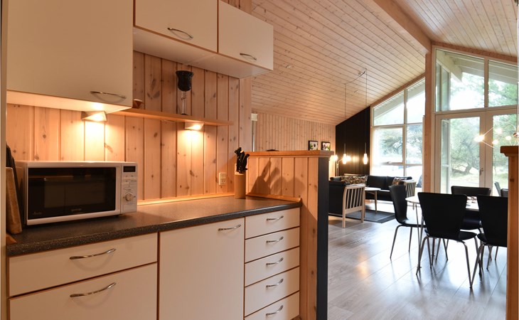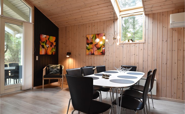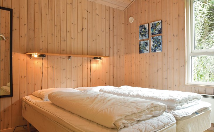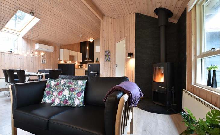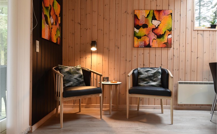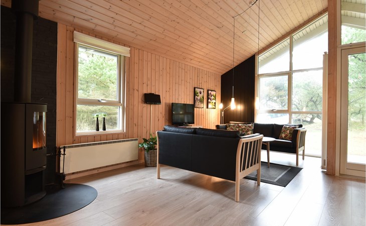 It's only 250 meters to the North Sea from this beautiful vacation home, which is located in a quiet area in a cottage area a few km from Søndervig. From the house and the terrace you can enjoy the view of the dune landscape under the shelter of the pines and spruces. The house is completely modern and furnished everywhere with contemporary furniture. The bright living room, the central room in the house, will be your meeting place. Of course, the cottage has a whirlpool and sauna. There is also a TV in each bedroom. A tastefully decorated house that is beautiful in all seasons.