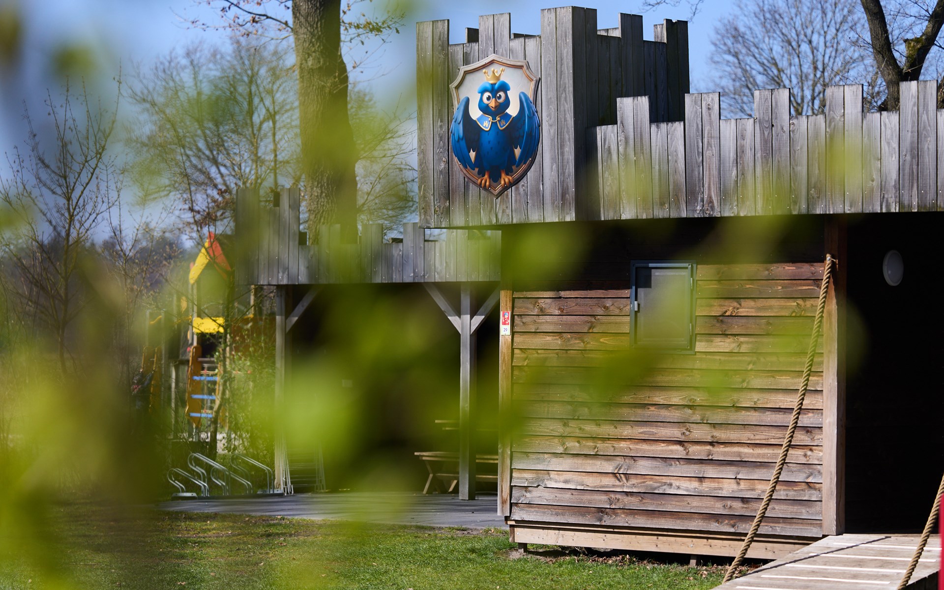The castle is fully equipped, with no shortage of comfort and luxury. In the spacious open living room there is a sitting area with flat screen TV, dining area and a kitchen. Adjacent are the 5 bedrooms, 2 of which have bunk beds. The lower bed can be folded up to place a camping cot here. Bed linen (consisting of a fitted sheet, bedsheet and pillowcase) is standard available for the number of people over the age of 2. There are also two bathrooms, 1 with a toilet and a separate toilet. Outside you can relax in the lounge-seating area with canopy. The children will have a great time in the playground directly opposite the castle.