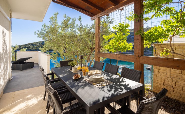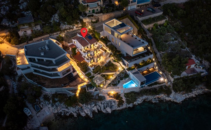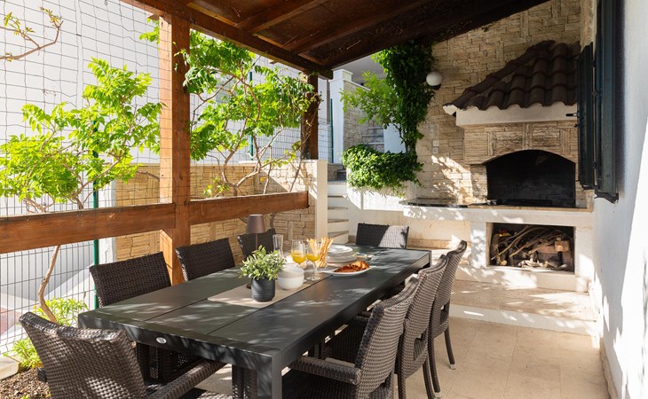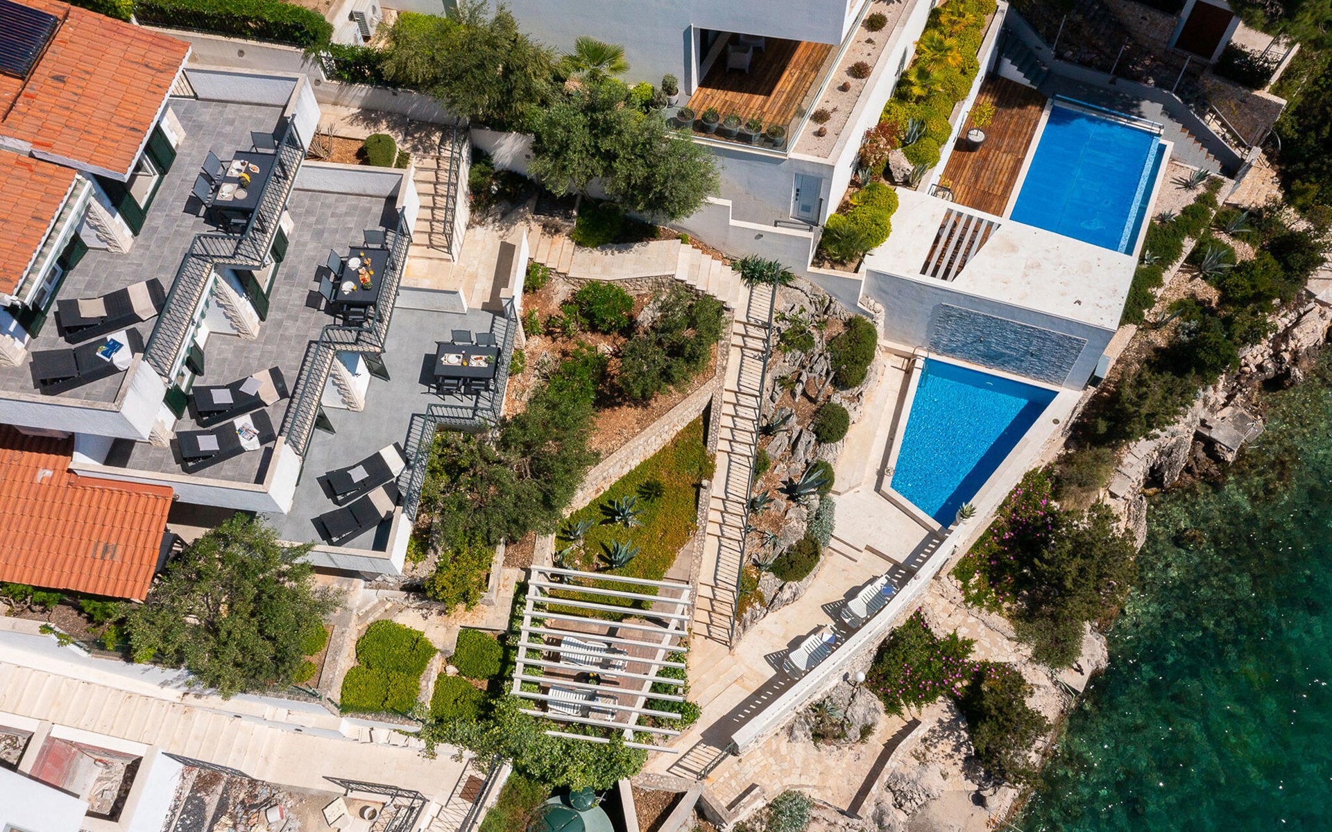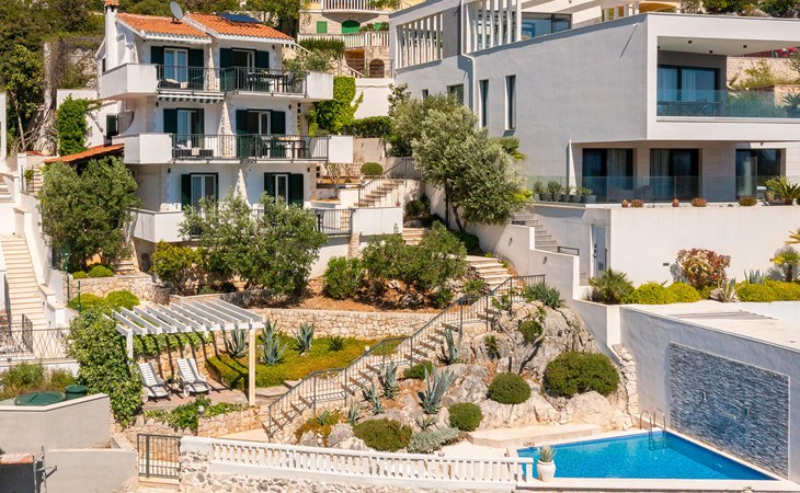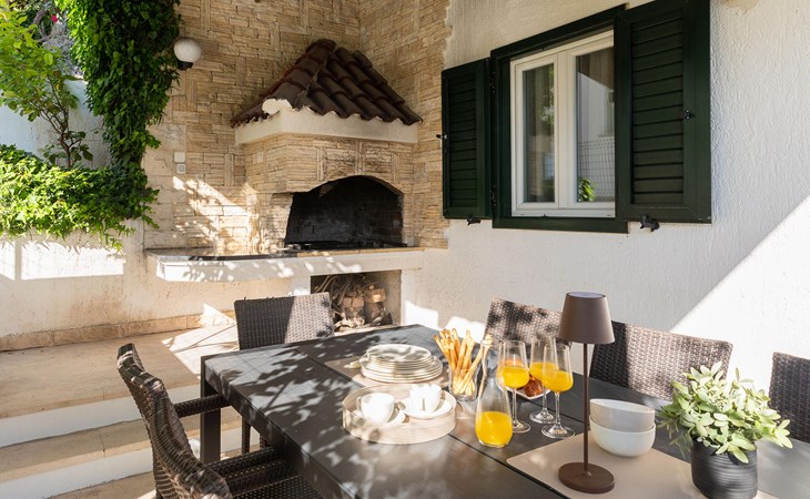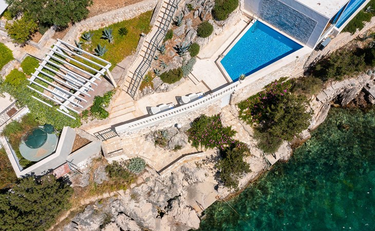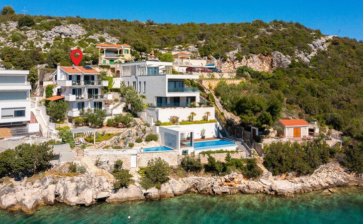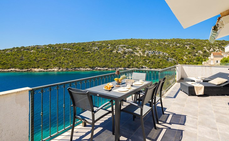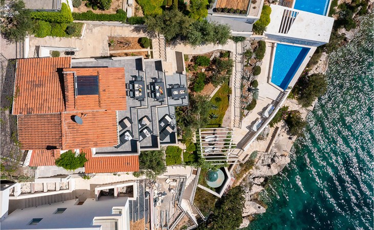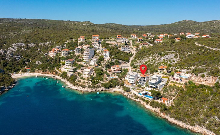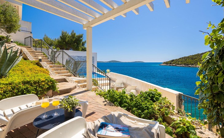 Relax from everyday stress in this beautiful vacation home in central Dalmatia. The house consists of three separate accommodation units, which are connected with an external staircase. Each unit has its own terrace with a beautiful sea view, where you can drink your morning coffee or chat comfortably in the evening. You can relax in the beautiful outdoor pool with sea water. There are several stairs leading to the beach. Within a radius of 30 km you will find two cities that are on the UNESCO World Heritage List: Split with the Palace of Diocletian and the historical center of Trogir. The beautiful bay Ljubljeva and these apartments offer plenty of peace and quiet, so you can relax from the stress of everyday life. Boat mooring with extra fee.