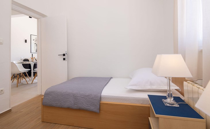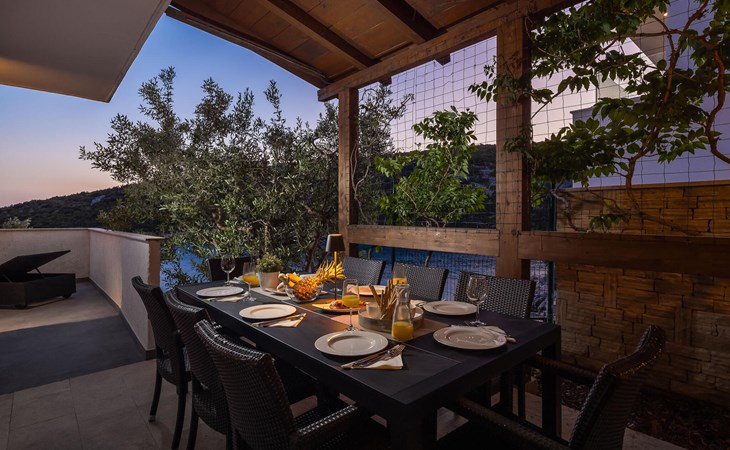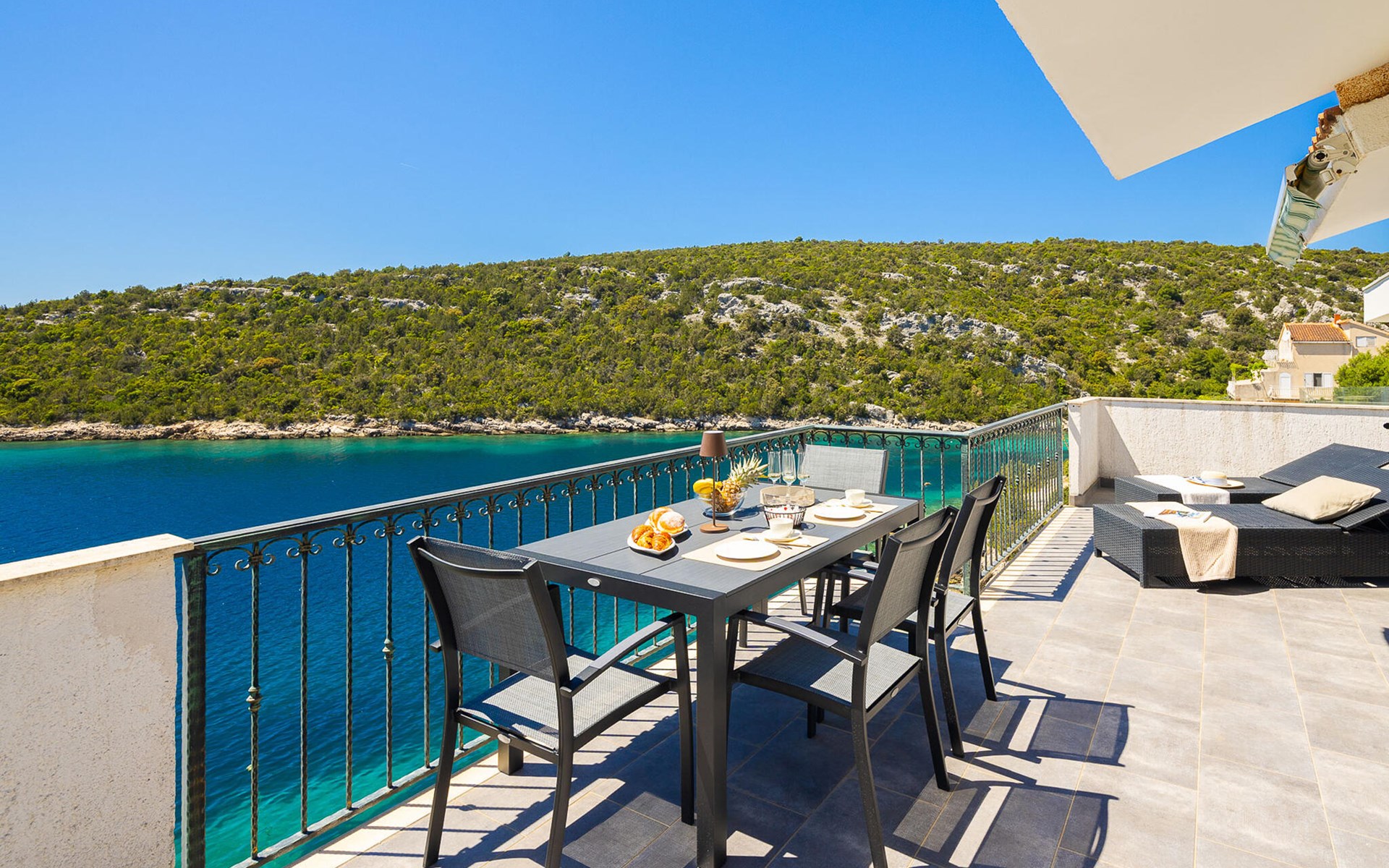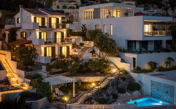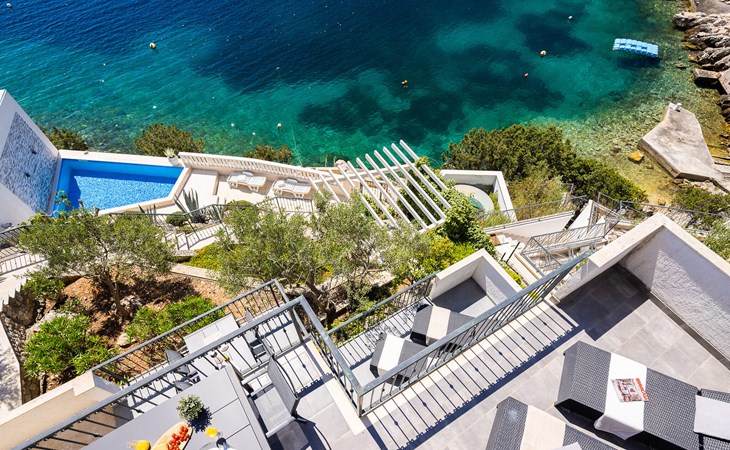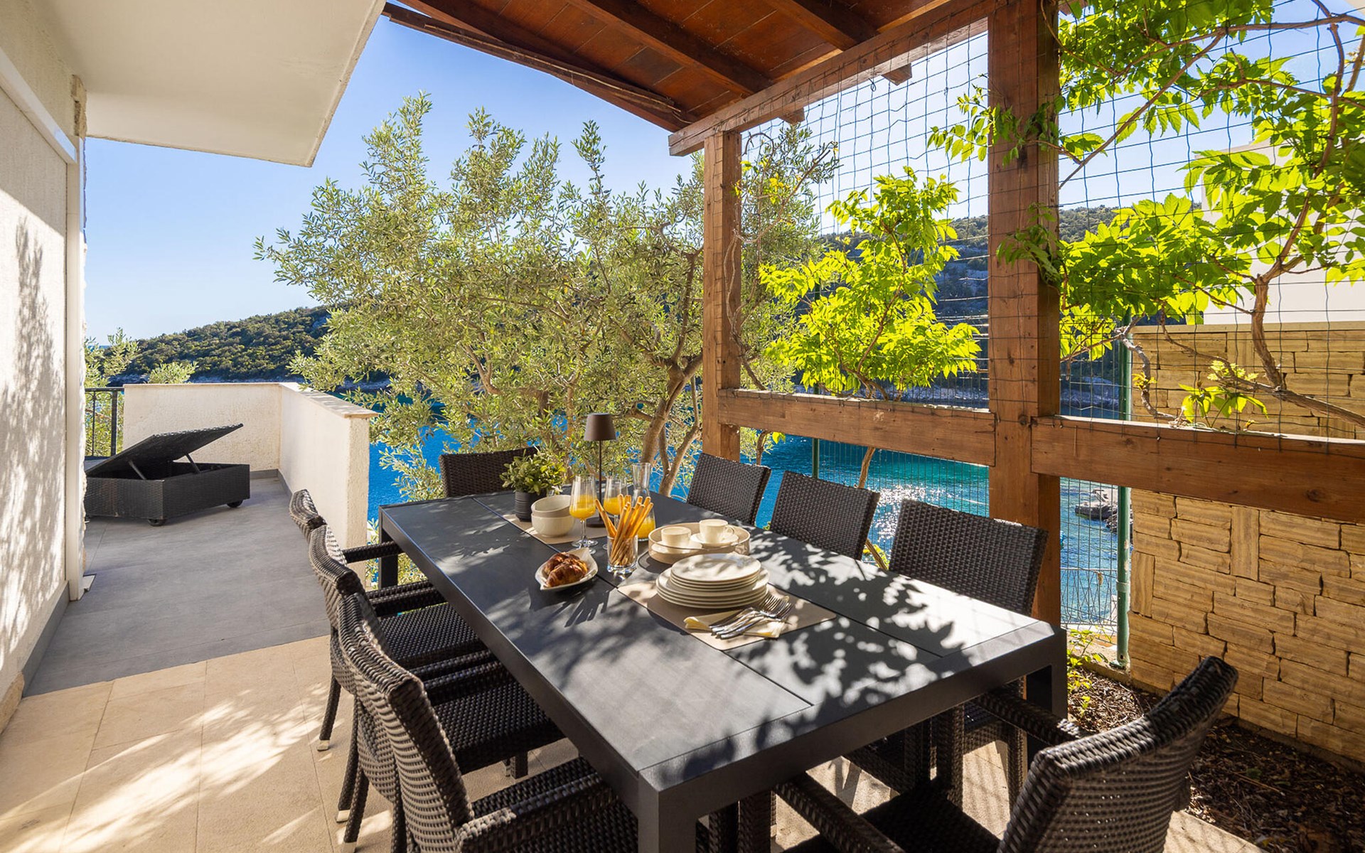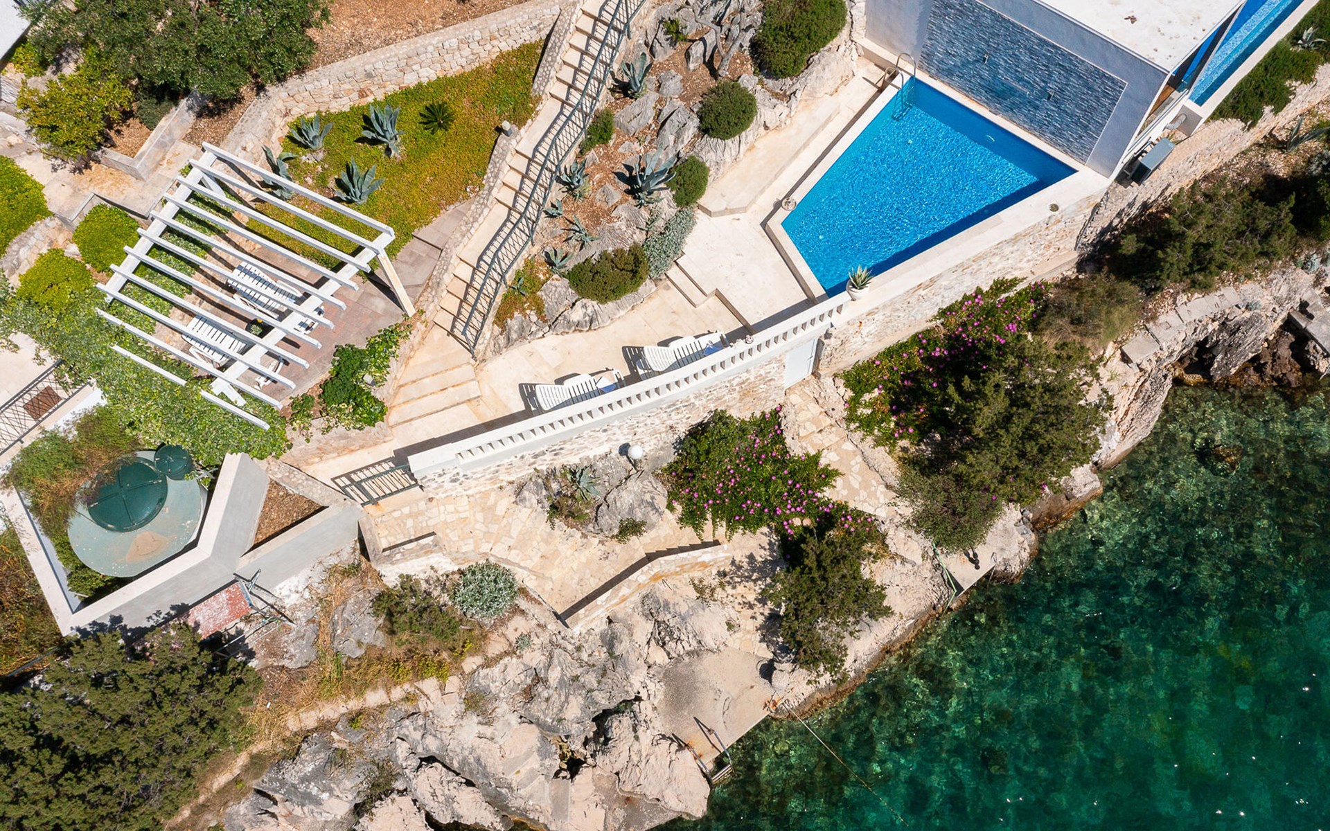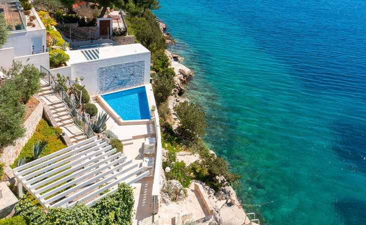 Relax from everyday stress in this beautiful vacation home in central Dalmatia. The house consists of three separate accommodation units, which are connected with an external staircase. Each unit has its own terrace with a beautiful sea view, where you can drink your morning coffee or chat comfortably in the evening. You can relax in the beautiful outdoor pool with sea water. There are several stairs leading to the beach. Within a radius of 30 km you will find two cities that are on the UNESCO World Heritage List: Split with the Palace of Diocletian and the historical center of Trogir. The beautiful bay Ljubljeva and these apartments offer plenty of peace and quiet, so you can relax from the stress of everyday life. Boat mooring with extra fee.