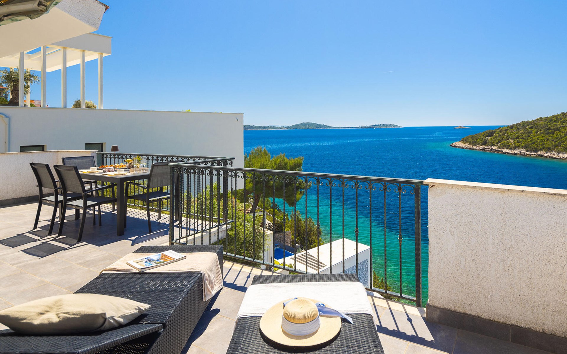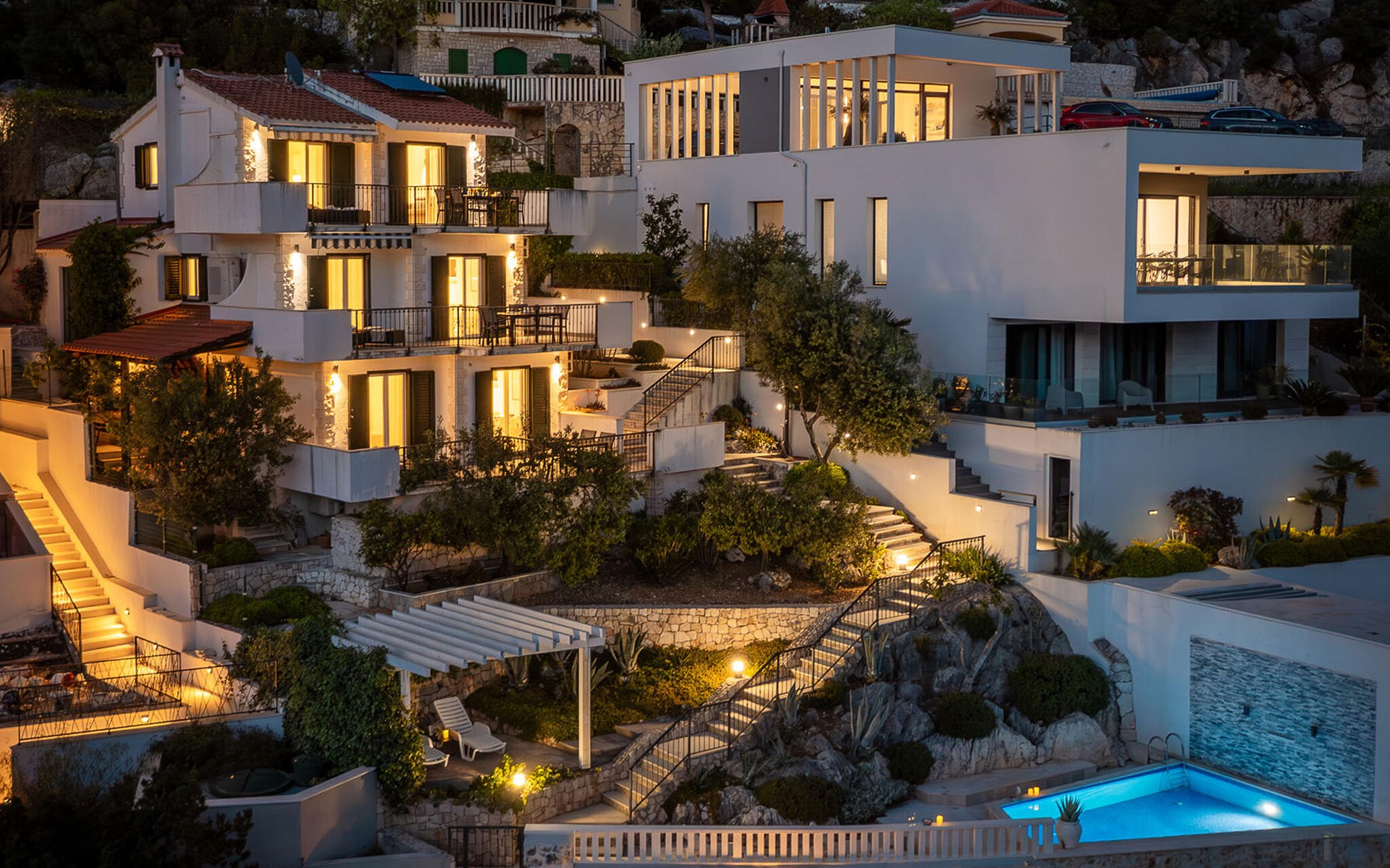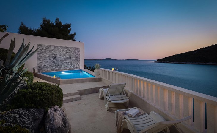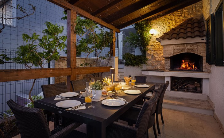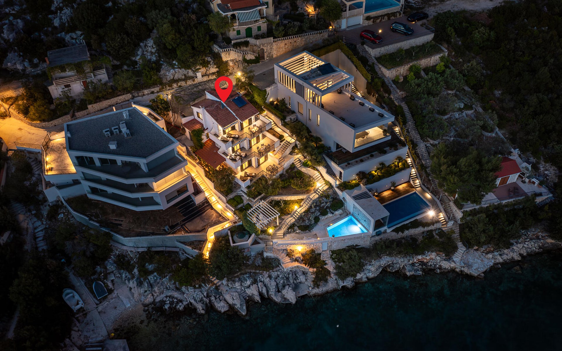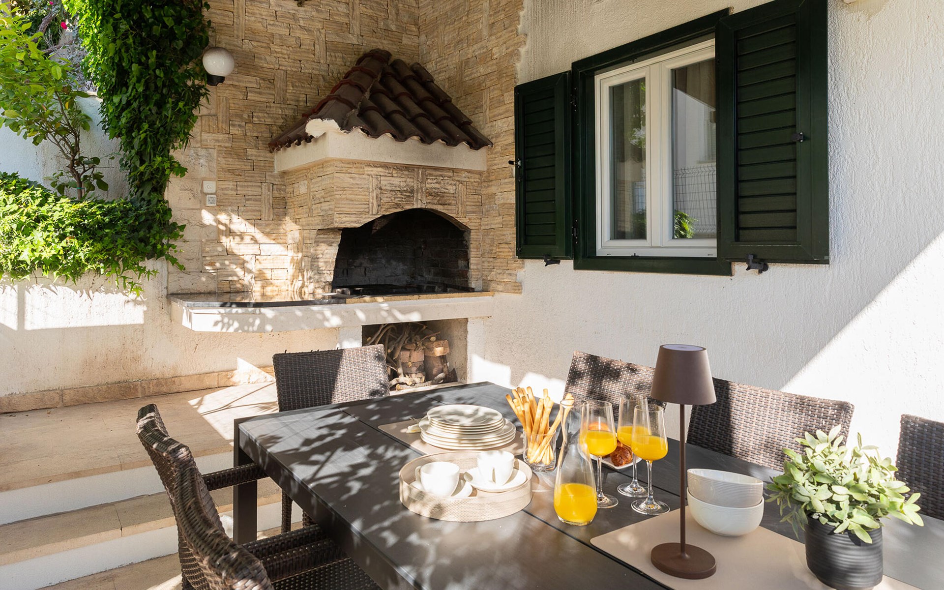 Relax from everyday stress in this beautiful vacation home in central Dalmatia. The house consists of three separate accommodation units, which are connected with an external staircase. Each unit has its own terrace with a beautiful sea view, where you can drink your morning coffee or chat comfortably in the evening. You can relax in the beautiful outdoor pool with sea water. There are several stairs leading to the beach. Within a radius of 30 km you will find two cities that are on the UNESCO World Heritage List: Split with the Palace of Diocletian and the historical center of Trogir. The beautiful bay Ljubljeva and these apartments offer plenty of peace and quiet, so you can relax from the stress of everyday life. Boat mooring with extra fee.