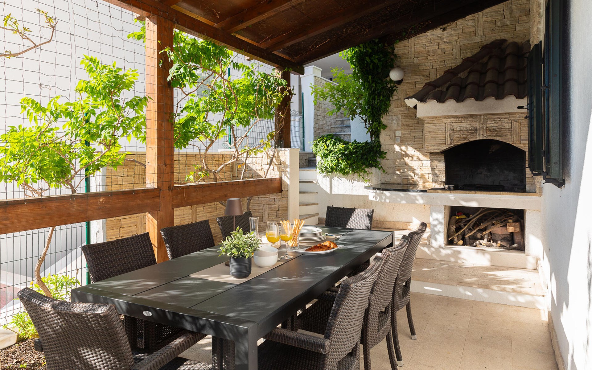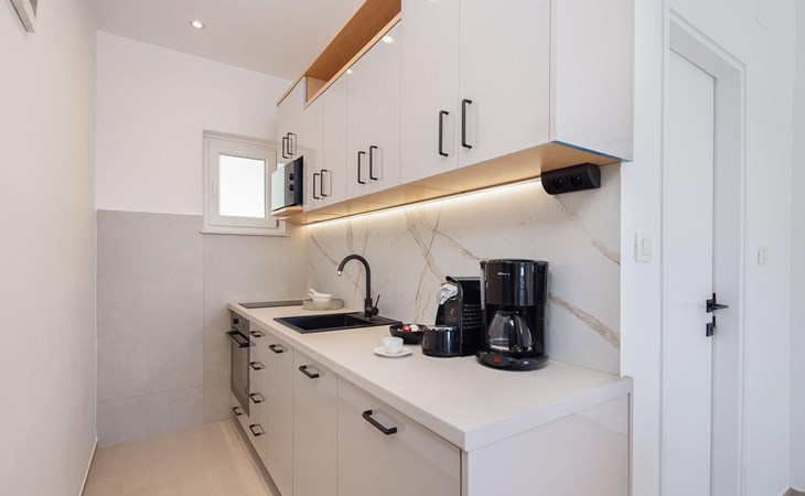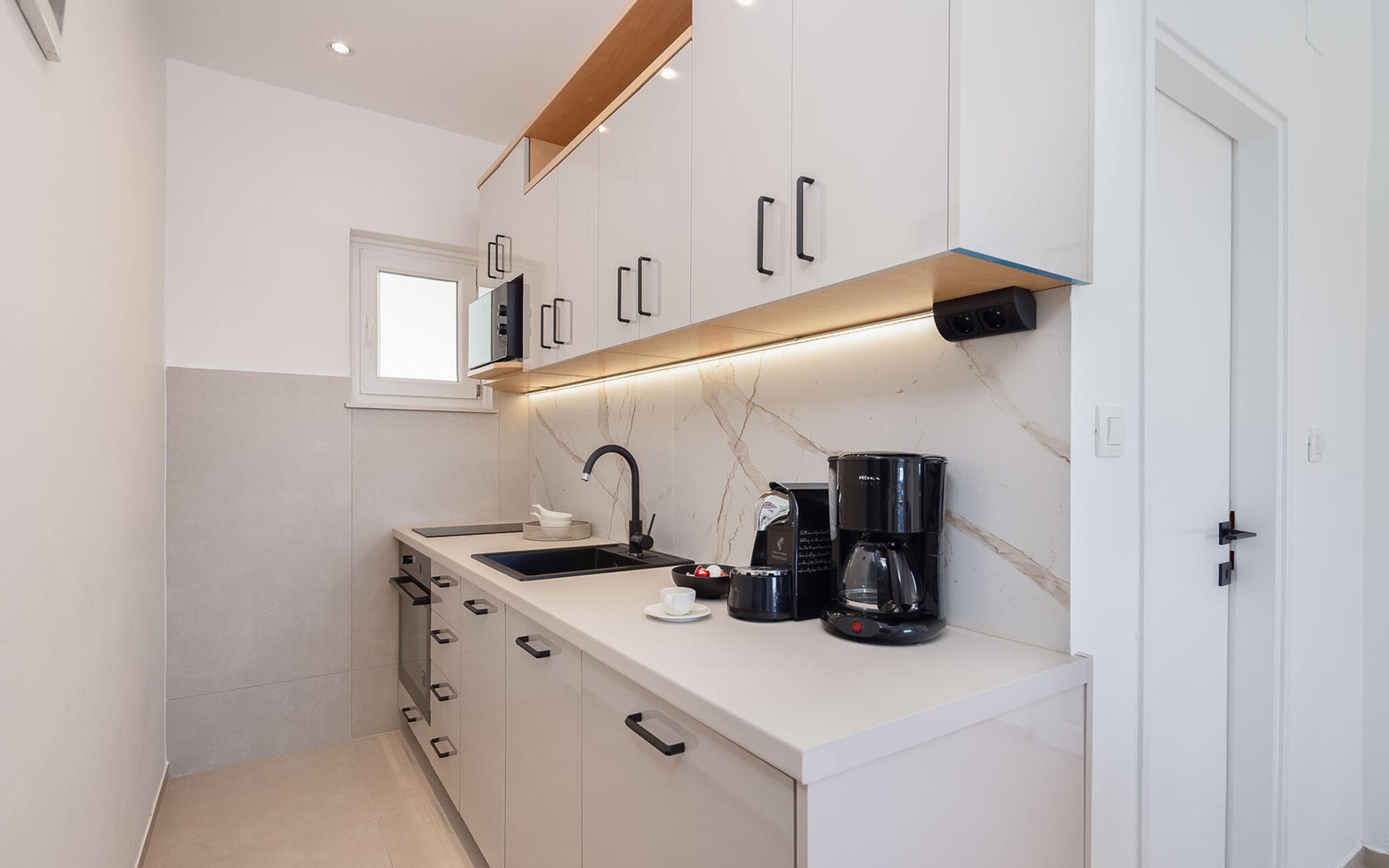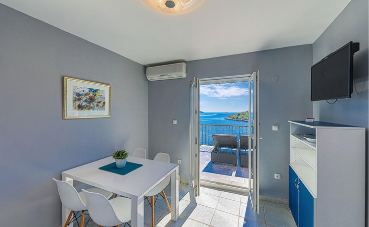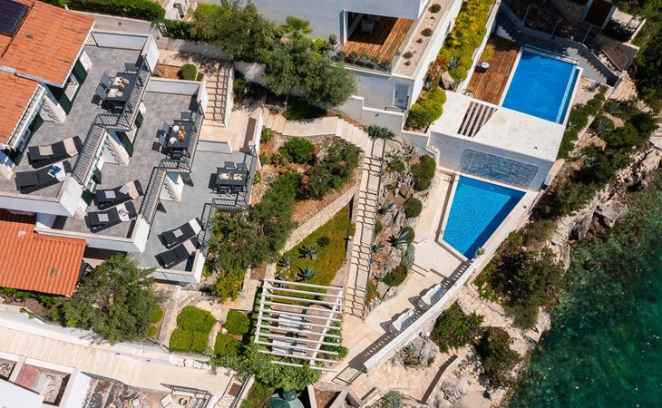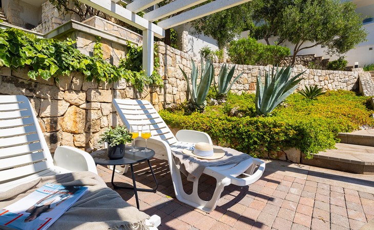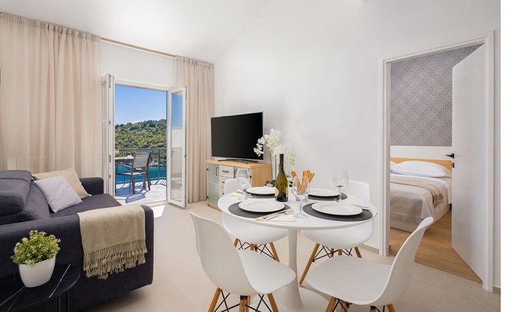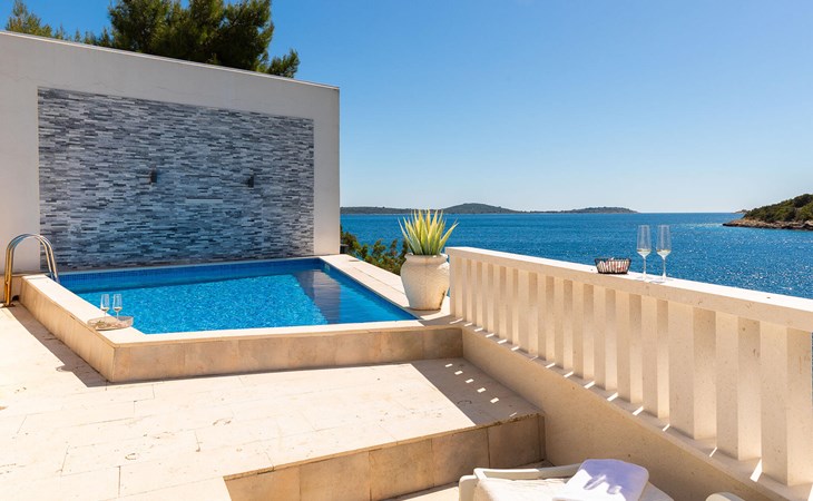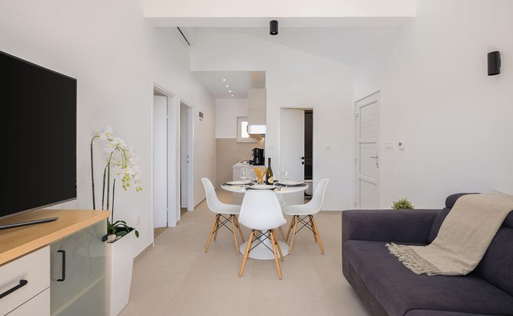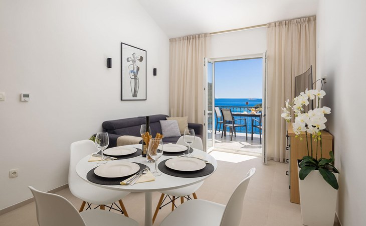 Relax from everyday stress in this beautiful vacation home in central Dalmatia. The house consists of three separate accommodation units, which are connected with an external staircase. Each unit has its own terrace with a beautiful sea view, where you can drink your morning coffee or chat comfortably in the evening. You can relax in the beautiful outdoor pool with sea water. There are several stairs leading to the beach. Within a radius of 30 km you will find two cities that are on the UNESCO World Heritage List: Split with the Palace of Diocletian and the historical center of Trogir. The beautiful bay Ljubljeva and these apartments offer plenty of peace and quiet, so you can relax from the stress of everyday life. Boat mooring with extra fee.