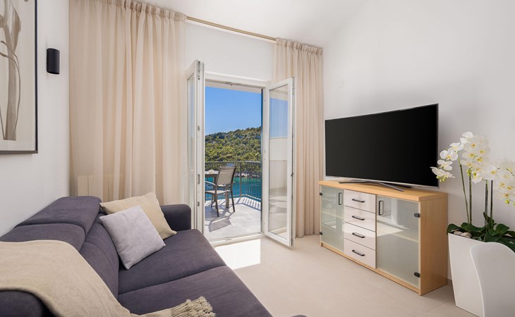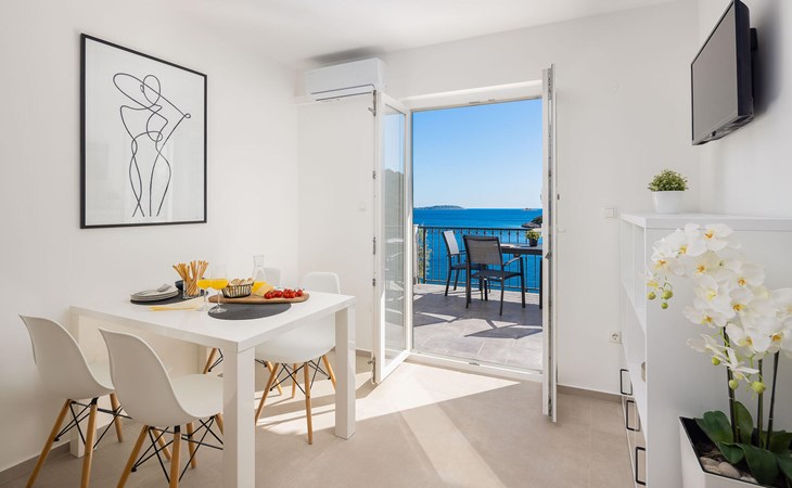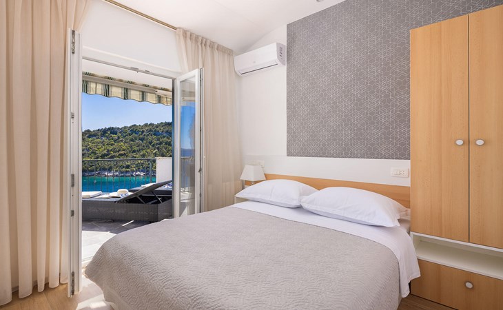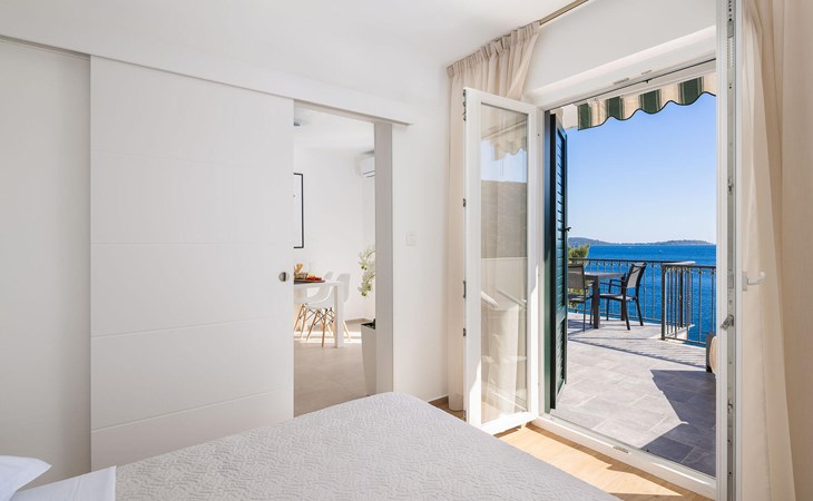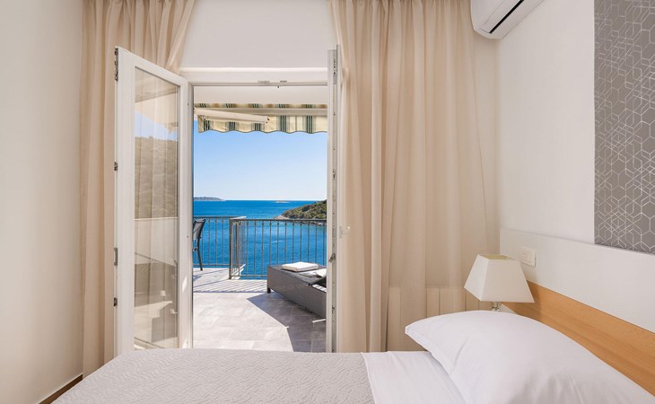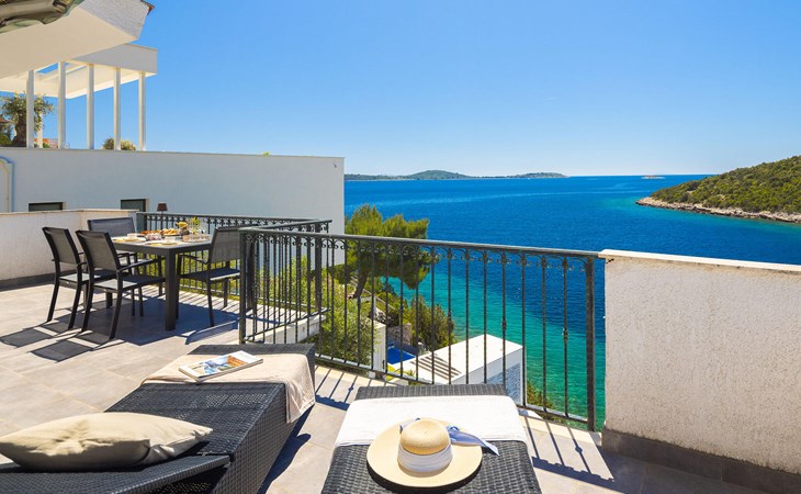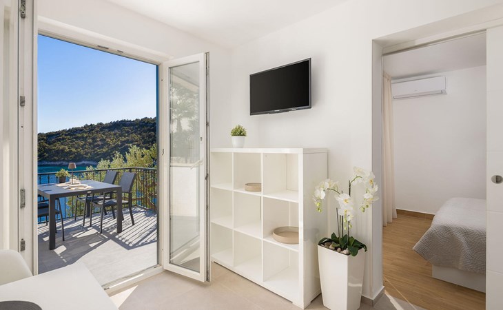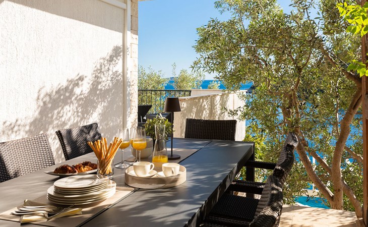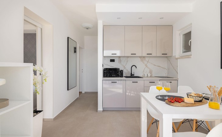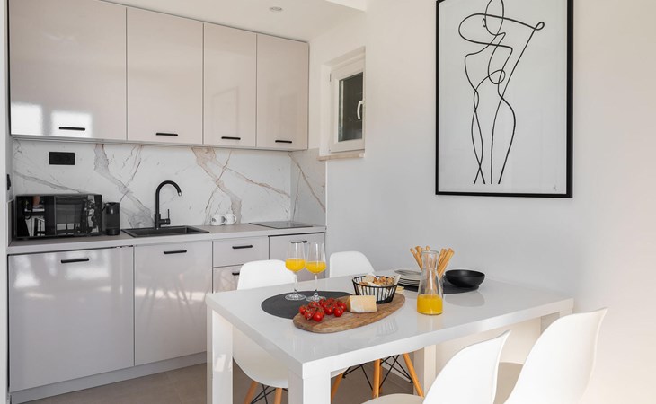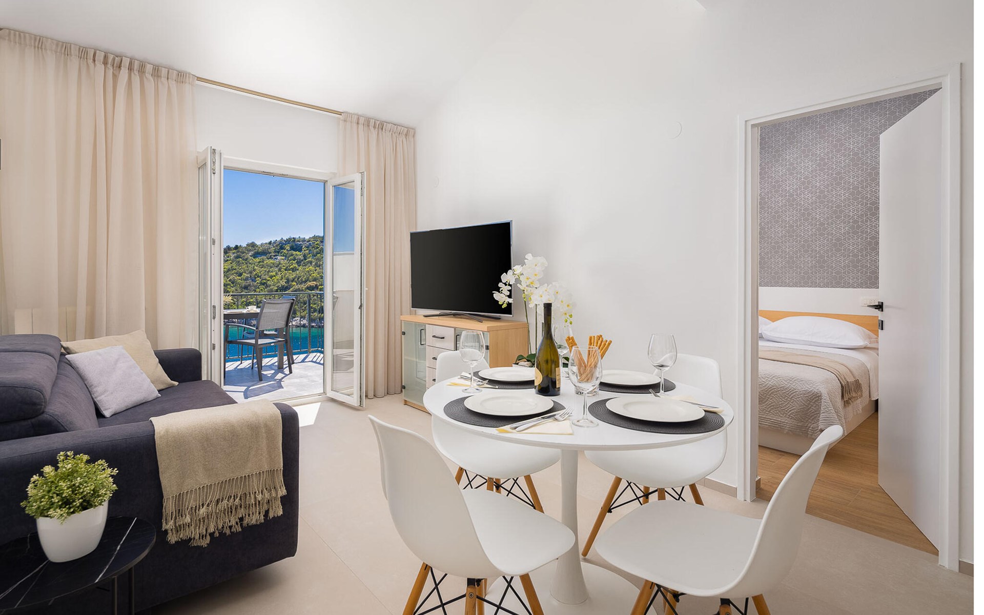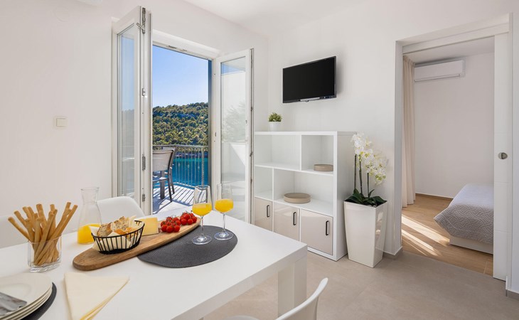 Relax from everyday stress in this beautiful vacation home in central Dalmatia. The house consists of three separate accommodation units, which are connected with an external staircase. Each unit has its own terrace with a beautiful sea view, where you can drink your morning coffee or chat comfortably in the evening. You can relax in the beautiful outdoor pool with sea water. There are several stairs leading to the beach. Within a radius of 30 km you will find two cities that are on the UNESCO World Heritage List: Split with the Palace of Diocletian and the historical center of Trogir. The beautiful bay Ljubljeva and these apartments offer plenty of peace and quiet, so you can relax from the stress of everyday life. Boat mooring with extra fee.