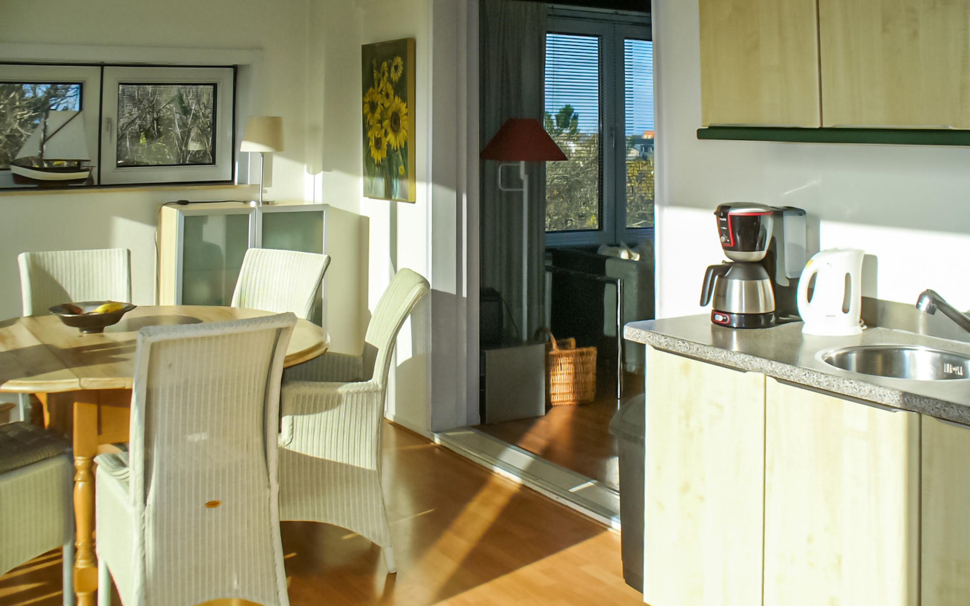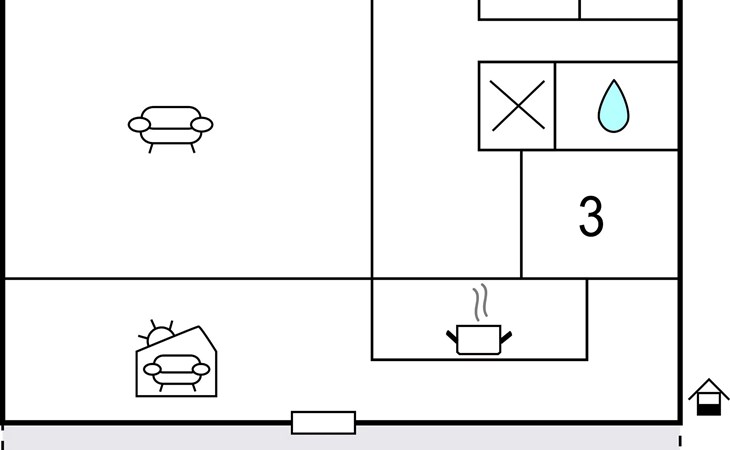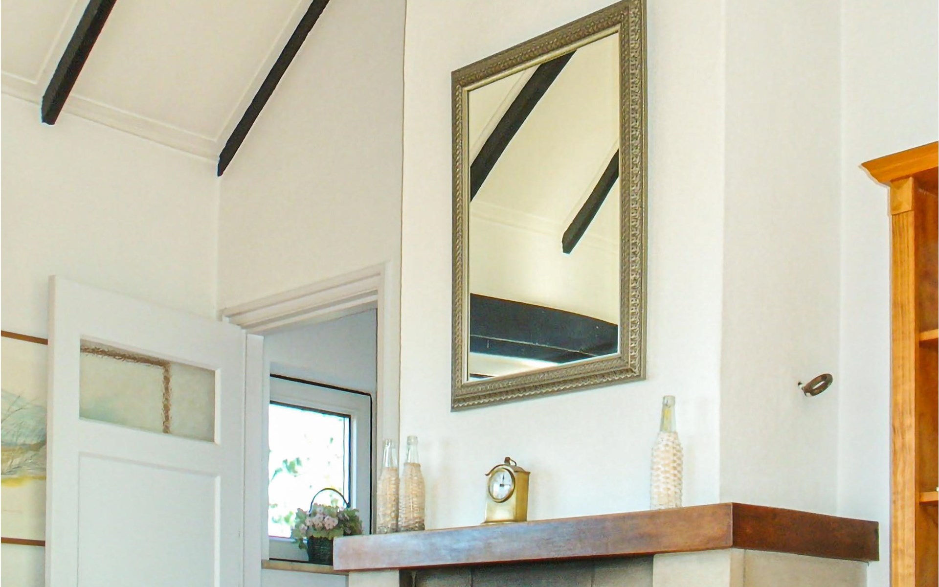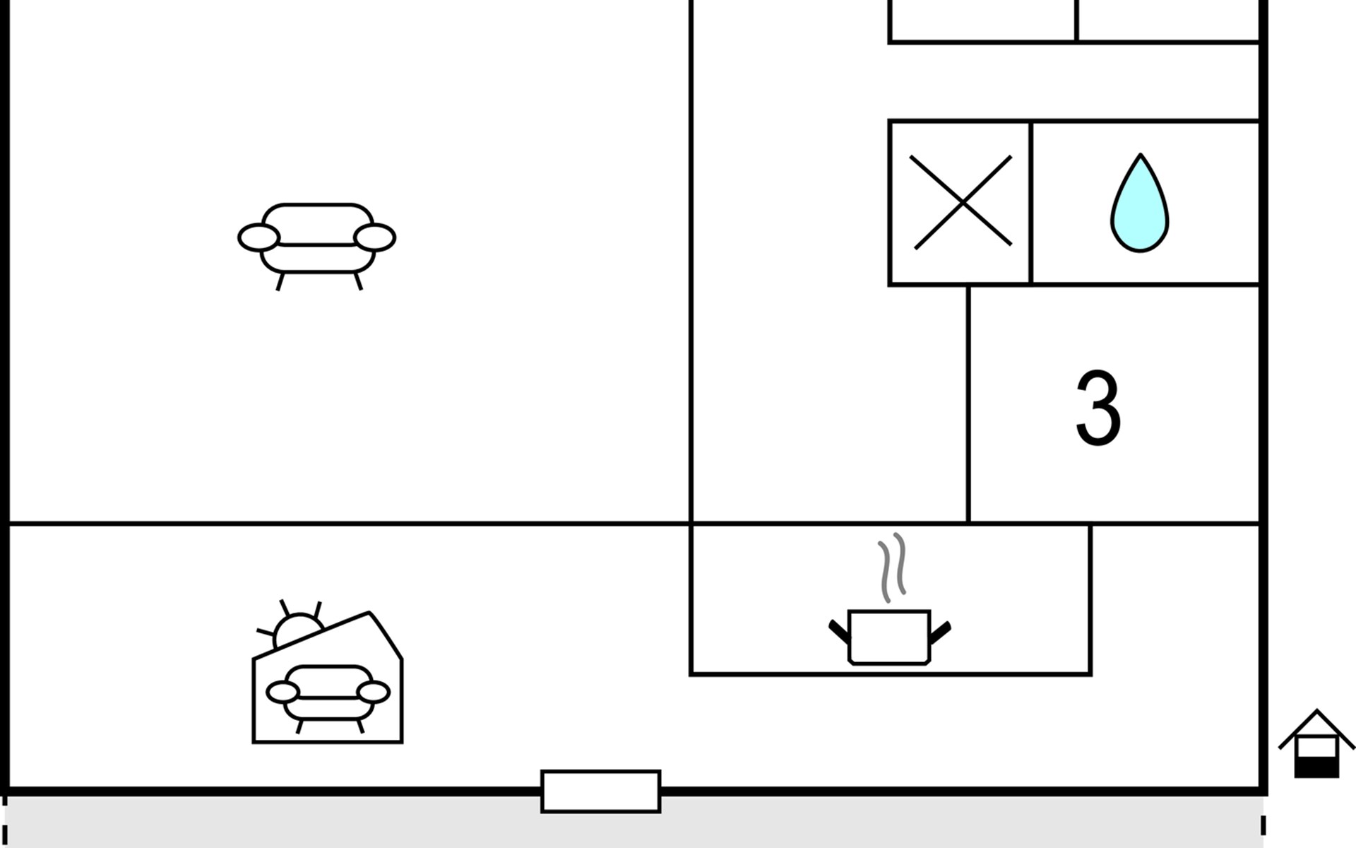 This separate part of the house has a cozy living room with a high ceiling, a fireplace and a beautiful view. It is equipped with a stereo system, a TV, a DVD player, wireless internet and plenty of seating. The open kitchen with a round dining table with 6 chairs is connected to the outdoor terrace by a glass wall with patio doors and is fully equipped with dishwasher, oven, gas stove with 4 burners, refrigerator with freezer. The beautiful sheltered terrace facing south with garden furniture and all-day sunshine is an ideal place for lounging.