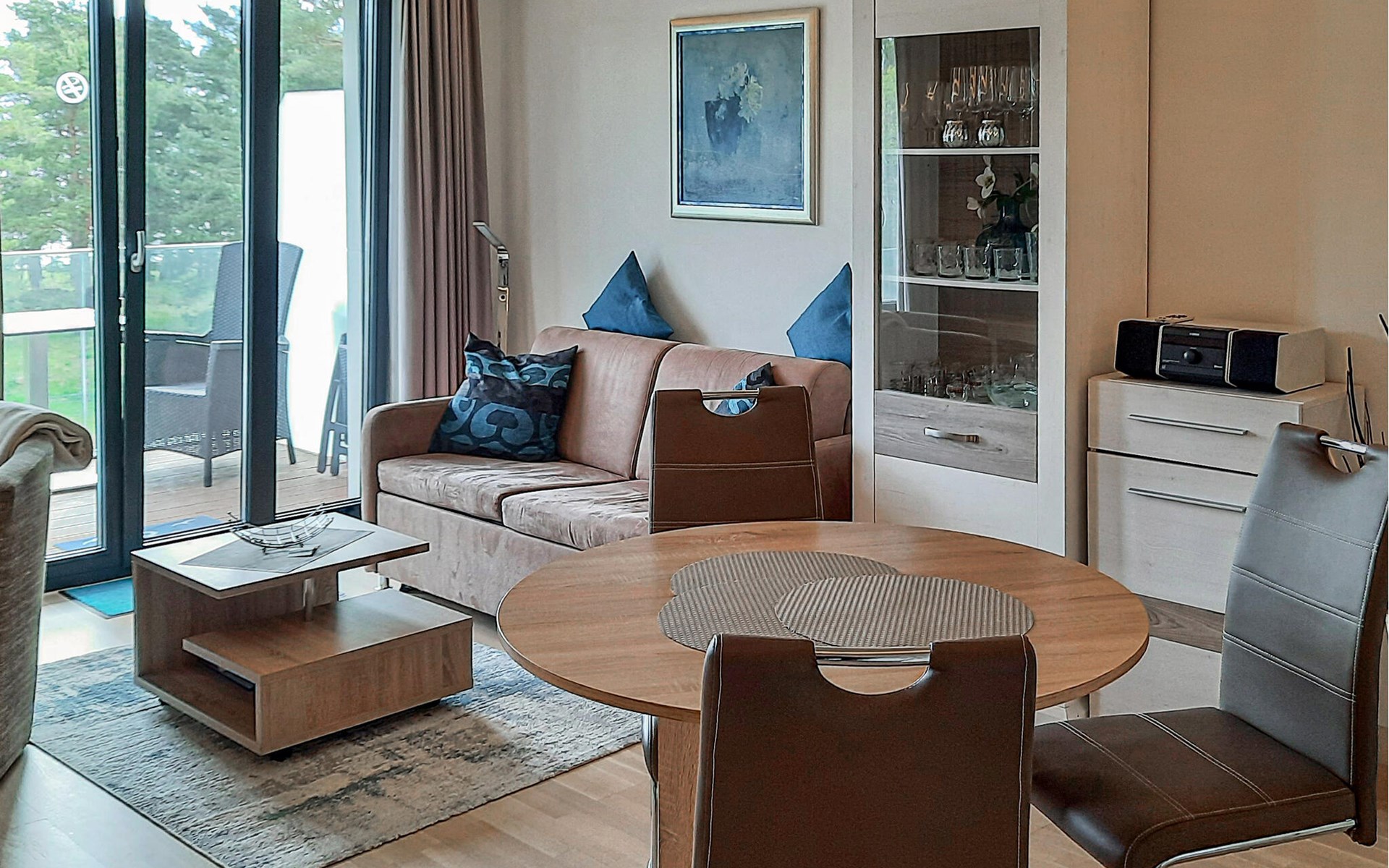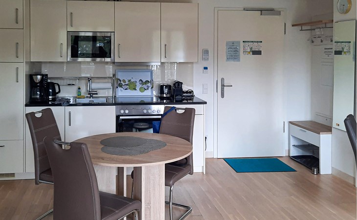 The holiday apartment promises a high-quality atmosphere of enjoyment and well-being. Exclusive furniture has been perfectly coordinated and epitomises a lifestyle that combines harmony and elegance. Every piece of furniture and home accessory has been carefully selected - nothing has been left to chance. Particular attention was paid to a healthy indoor climate and allergy-friendly materials. You will find all amenities here on over 40m². The spacious, open-plan living area is flooded with light thanks to the large window fronts, the view opens up and can wander over the small pine forest to the turquoise-coloured waters of the Baltic Sea. The well-equipped kitchen also leaves nothing to be desired and invites you to enjoy cooking evenings with your loved ones. Coffee lovers will certainly enjoy the Nespresso machine provided (please bring your own capsules).