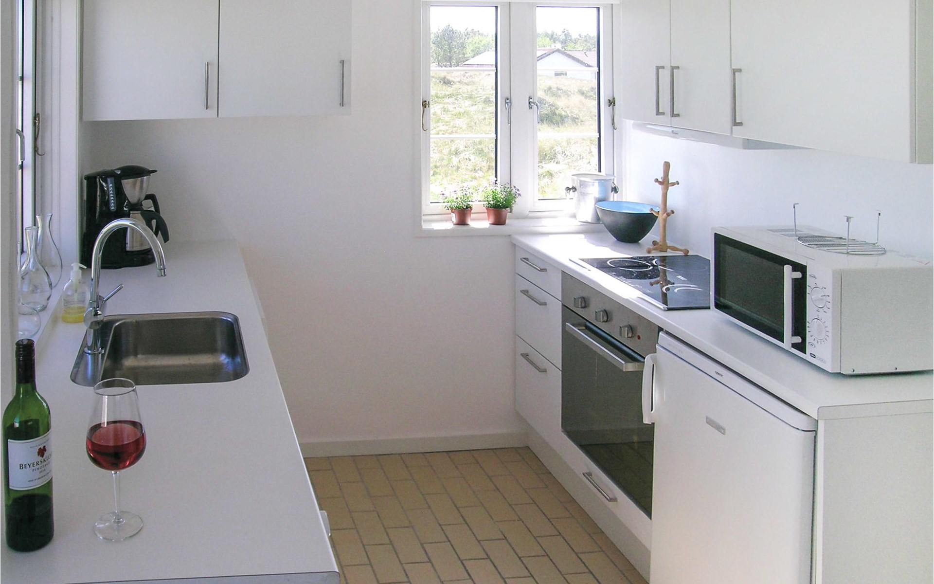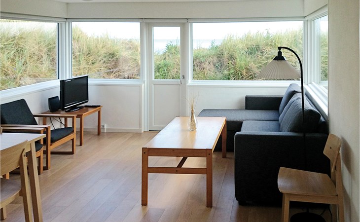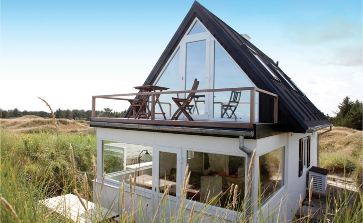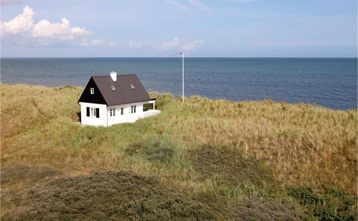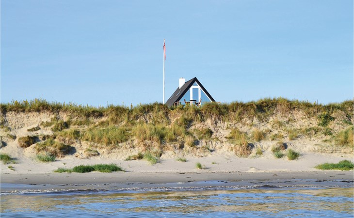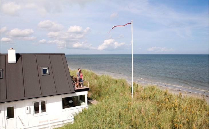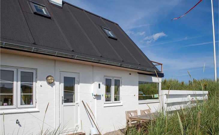 You could hardly live closer to the sea. This completely renovated holiday home is located directly on Bratten beach. Tastefully furnished in Scandinavian design, the house presents itself as a harmonious whole. Take your time to prepare delicious meals and enjoy them with a breathtaking view of the blue sea. On the upper floor, you can relax in your bed and enjoy the sea view. From the beautiful balcony terrace, a fantastic panoramic view stretches all the way to Skagen.