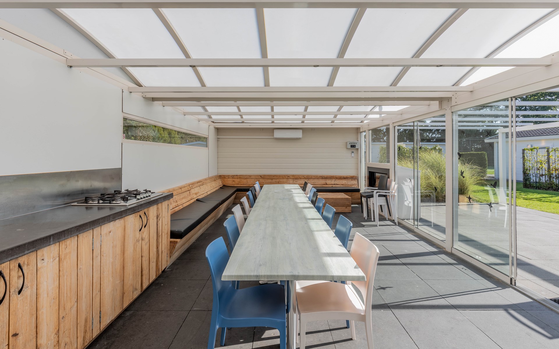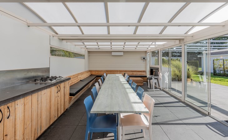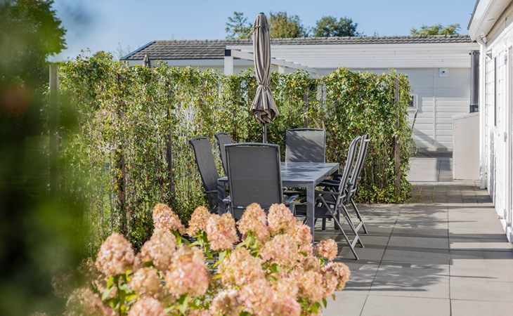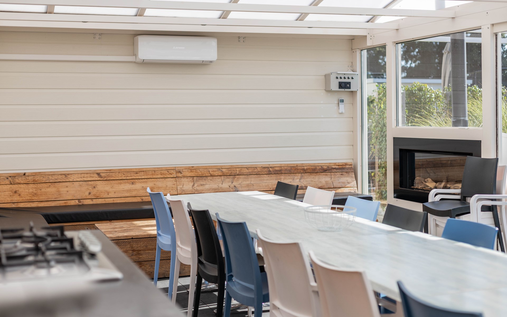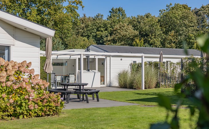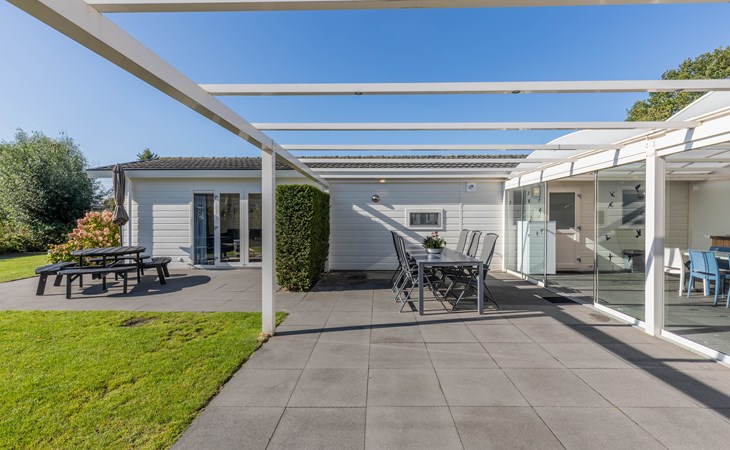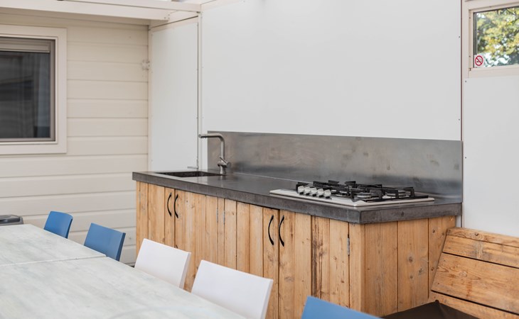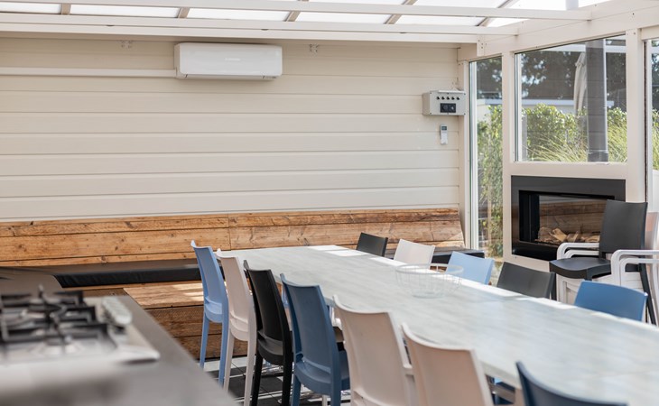 Mooie gezellige ruimte voor meerdere mensen. Goed overzichtelijk voor kleine kinderen. De gezamenlijke ruimte overdekt was fijn!