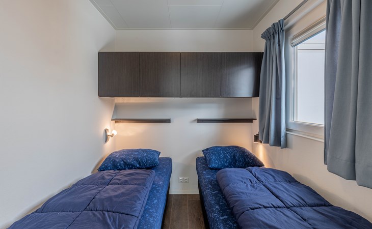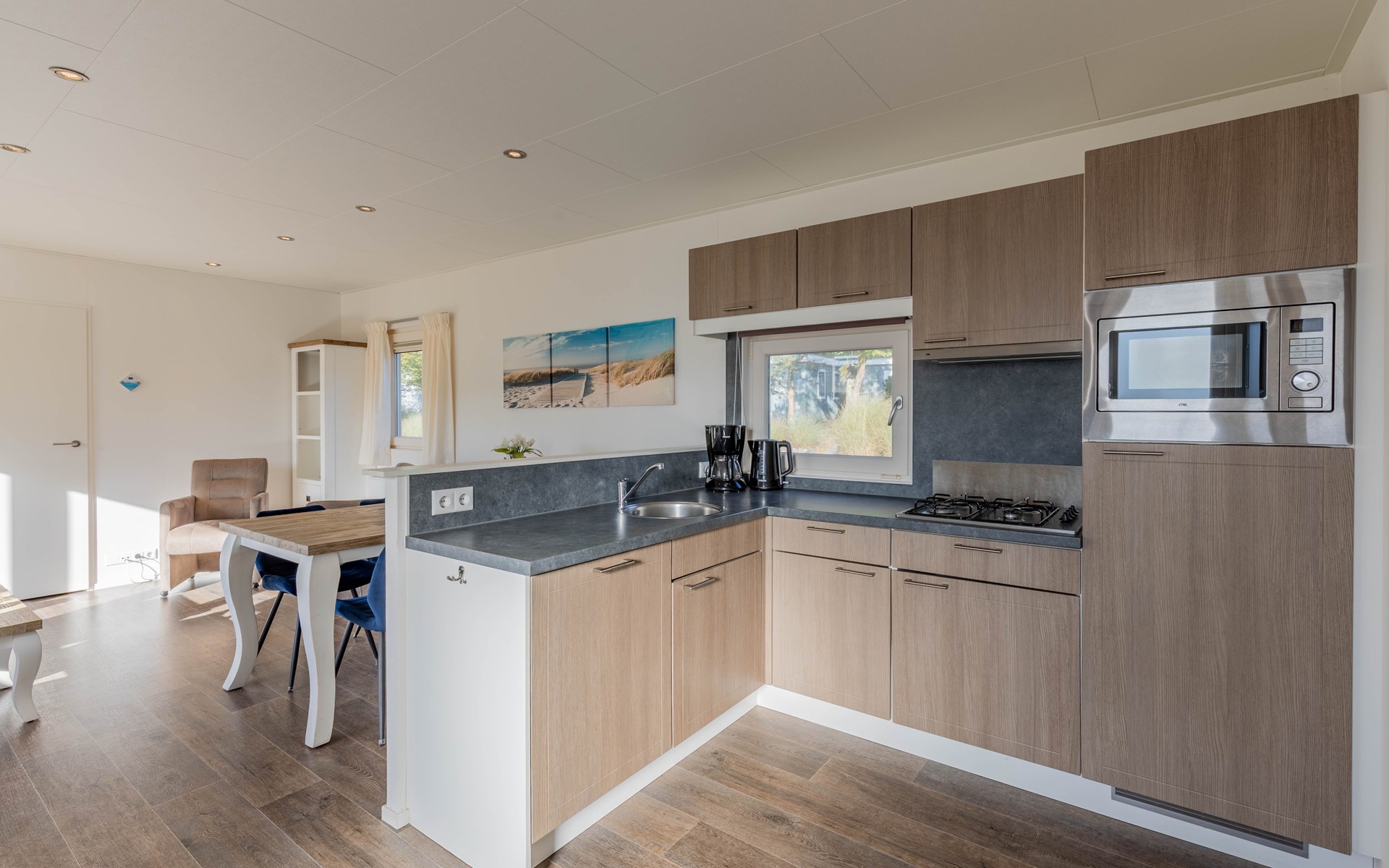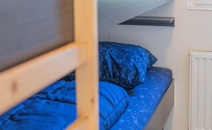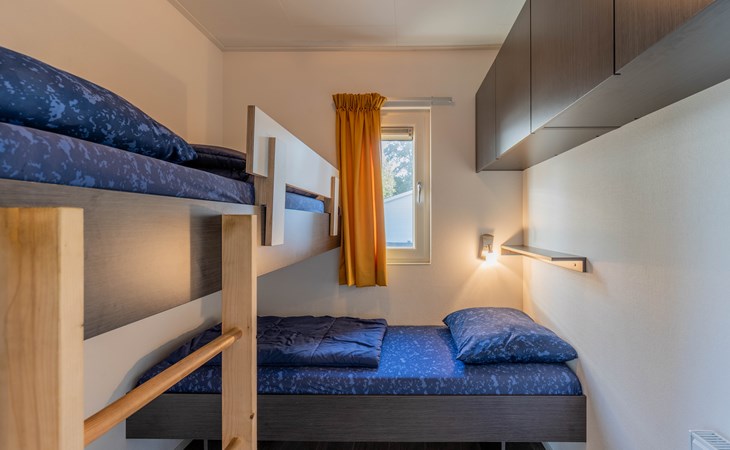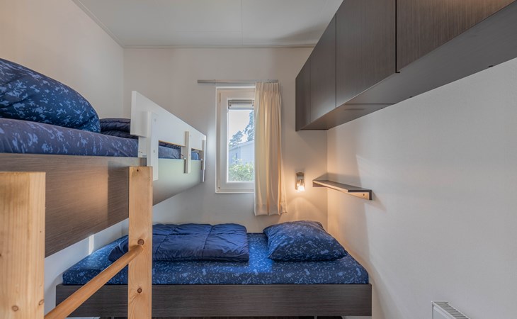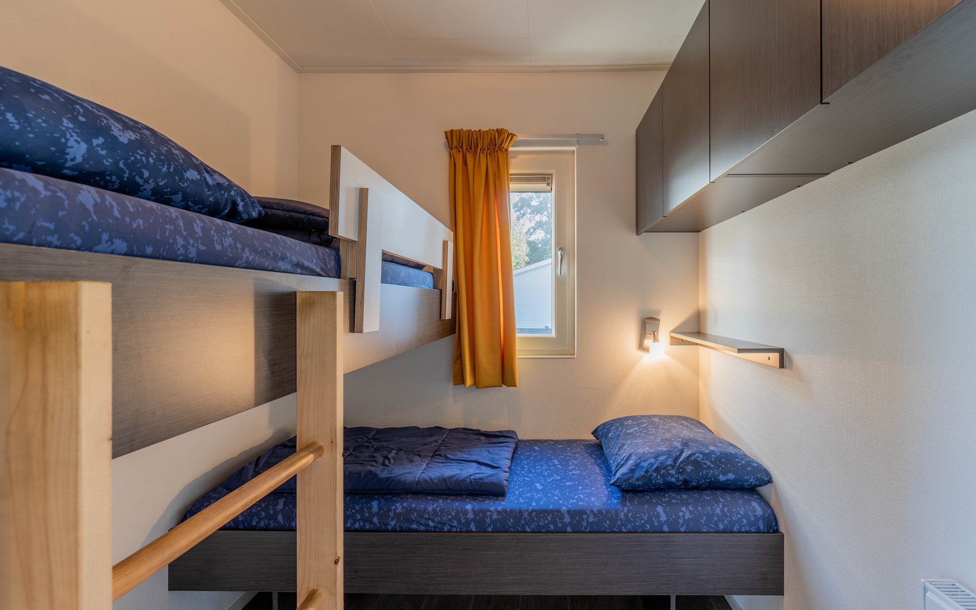 De groepsaccomodatie: aparte slaapvertrekken en toch een gezamelijke ruimte met keuken. Rustig park , goed voor de kinderen.