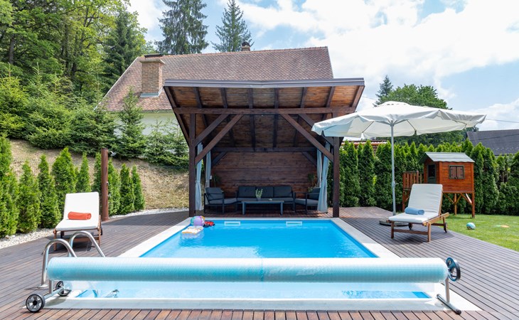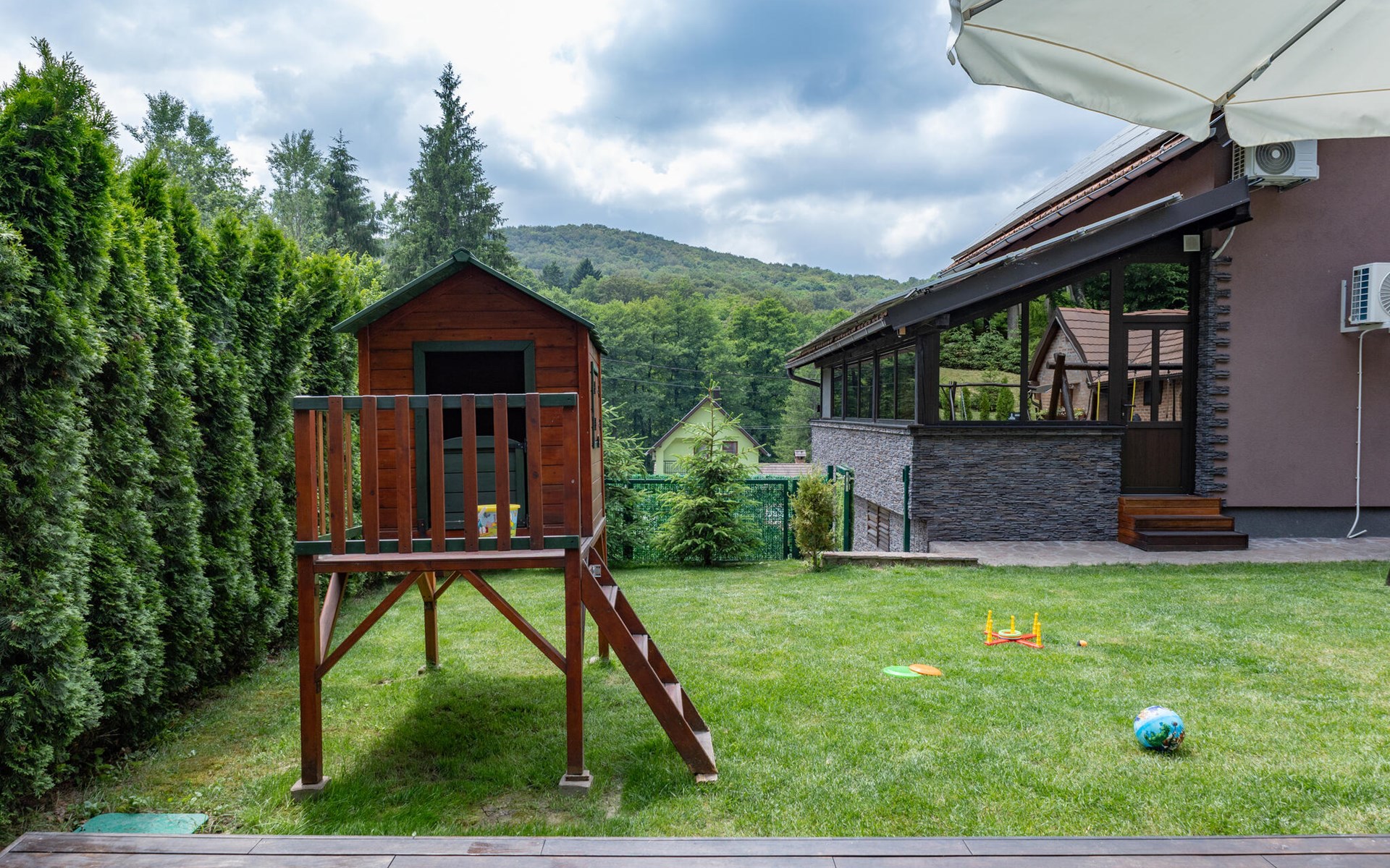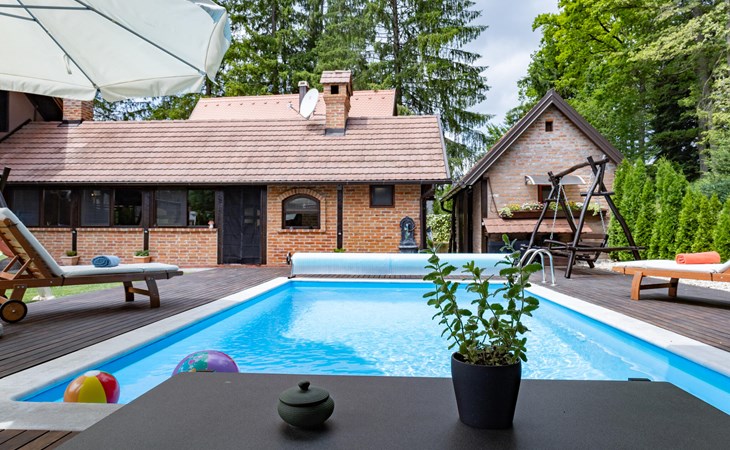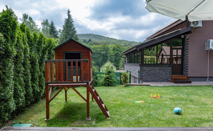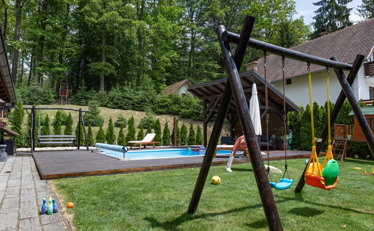 You will be delighted by the skillfully decorated interior and the elegant tones combined with local elements give the house a special charm. Your stay is rounded off by a covered terrace with fantastic views of nature. A rustic tavern with a large open fireplace is the perfect choice for preparing delicacies and spending pleasant evenings with family and friends.