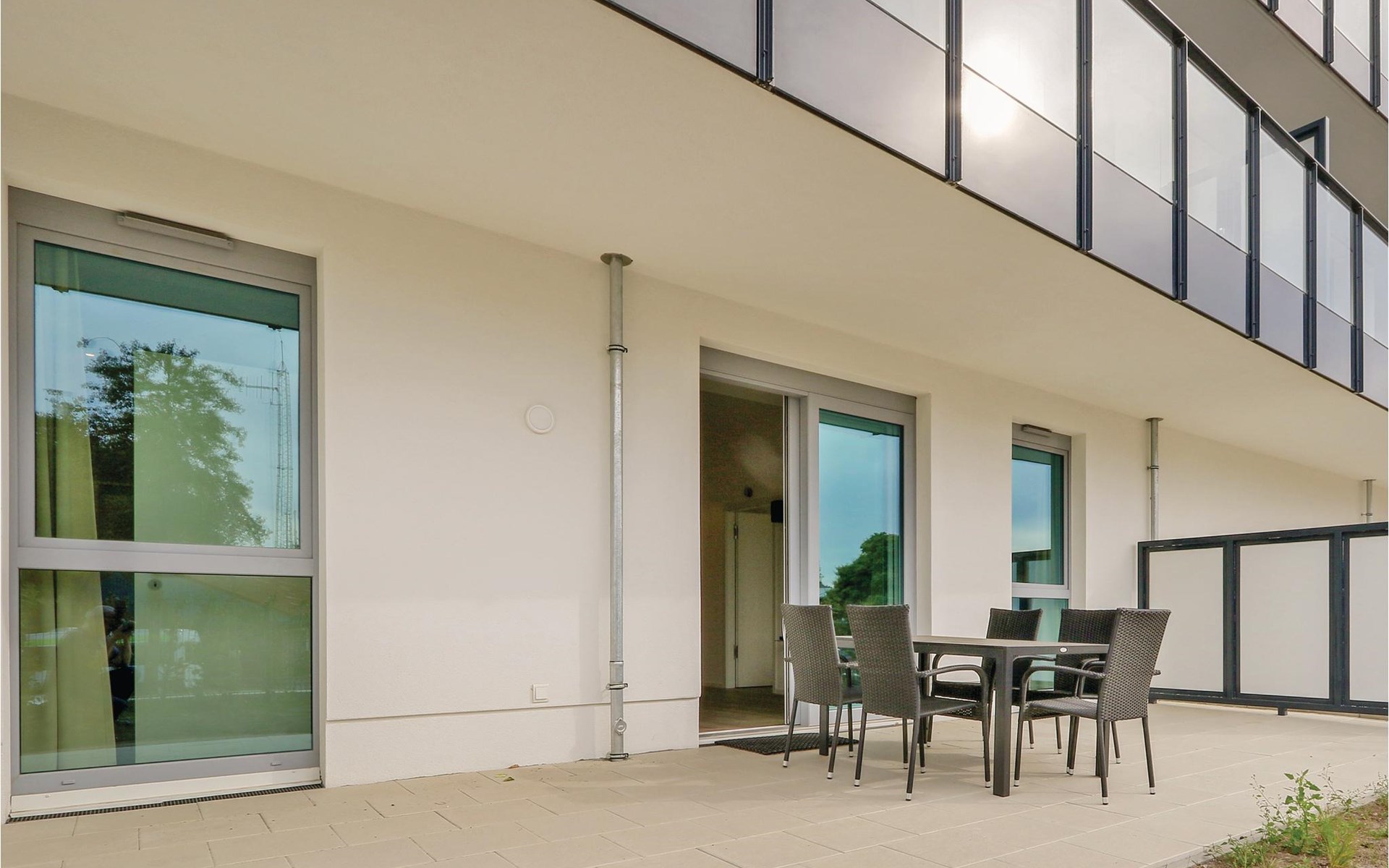 Your holiday apartment is located on the ground floor of the complex and is barrier-free. The apartment is not at ground level, you either have to walk a few steps or use the lift. All doors are at least 92 cm wide. This holiday apartment has an extra wide reserved guest parking space.