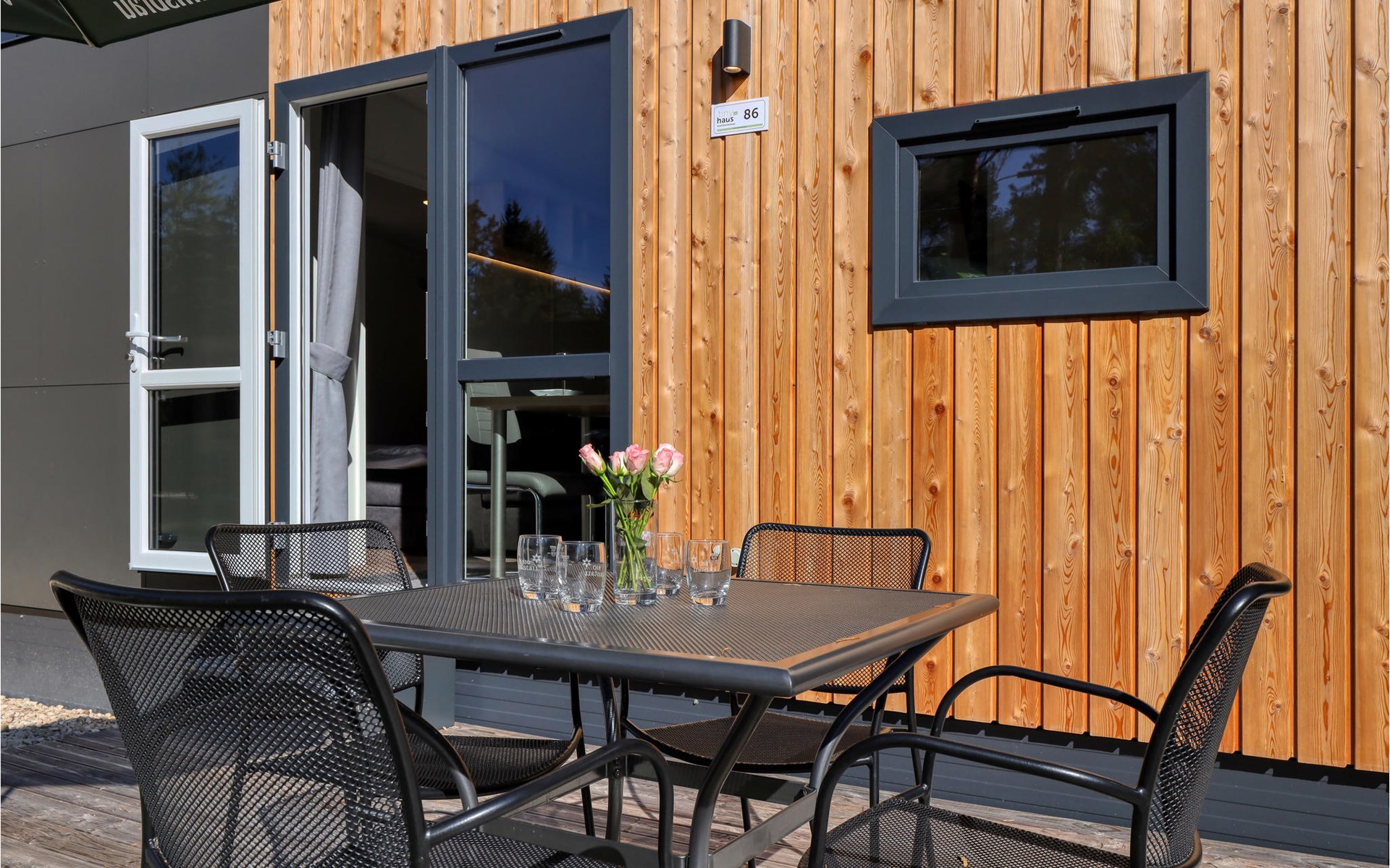 Enjoy pleasant hours outdoors on the open terrace, where you can soak up the sun on comfortable garden furniture while your children play happily. For added convenience, the WLAN is located directly in the tiny house.