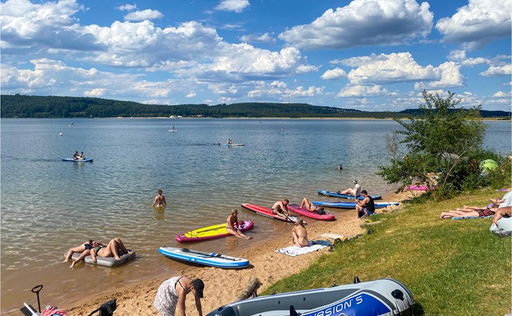 The forest campsite is in a quiet location, surrounded by the picturesque landscape of the Franconian Lake District and not far from the beautiful Brombachsee lake.