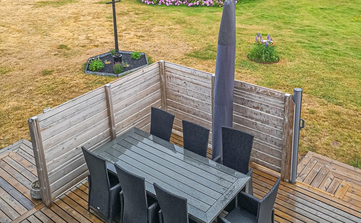 Choose between sunny and sheltered seating areas on the terrace. Enjoy socialising outdoors, dining at the large table or relaxing in the lounge furniture. The spacious garden with well-tended green areas offers plenty of space for activities or quiet moments among the trees and flowers.