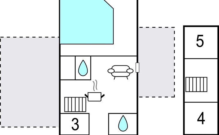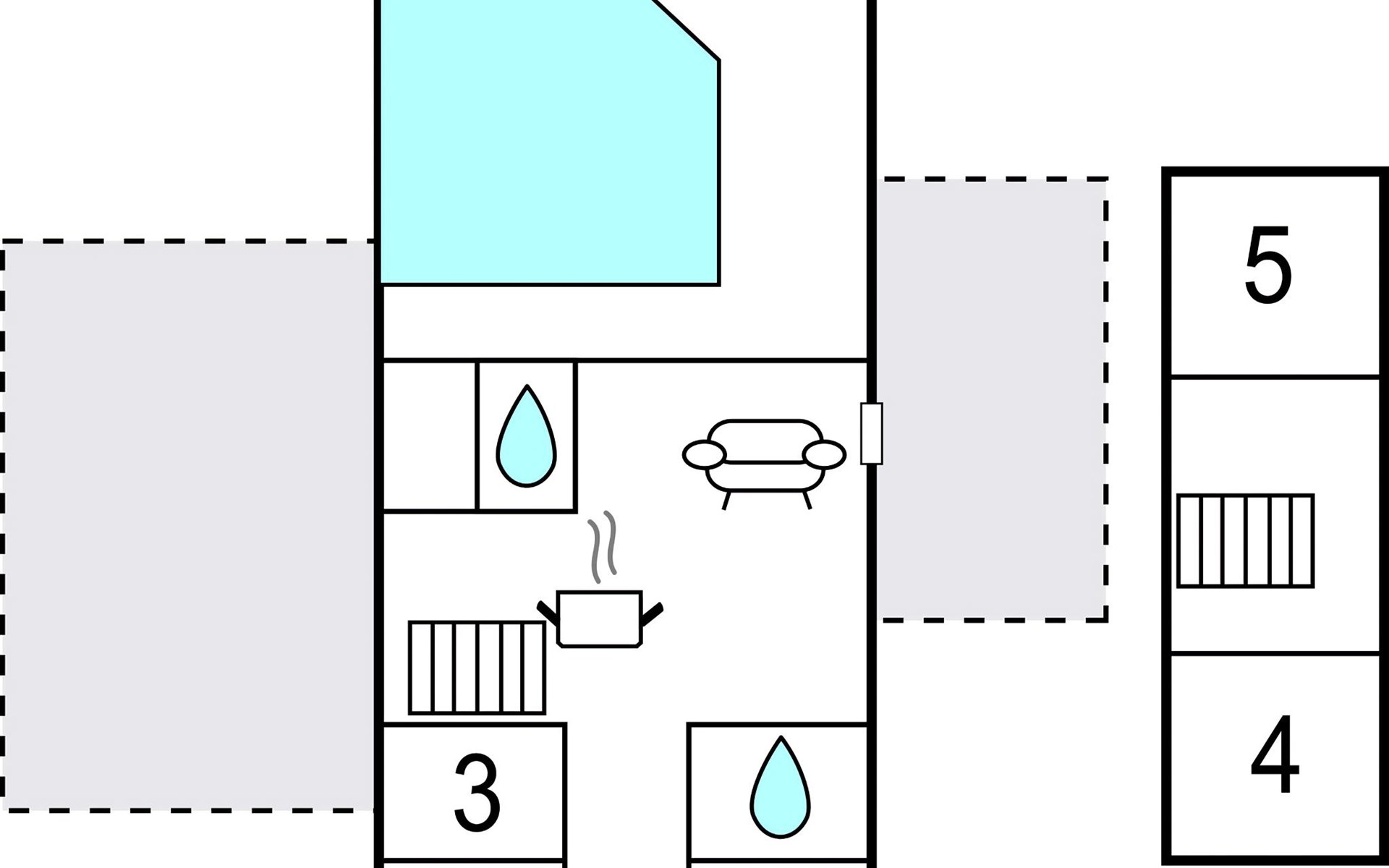In the house there are five bedrooms and a nice kitchen, which is connected to the living room. From the living room you have access to the terrace and on the west side of the house is a partially enclosed large sun terrace. In the large pool area of the house there is also a sauna and spa area, so there are good opportunities for swimming and relaxing. You can also look forward to the many outdoor opportunities, where the children will enjoy the trampoline and the swing. You can also play darts here.