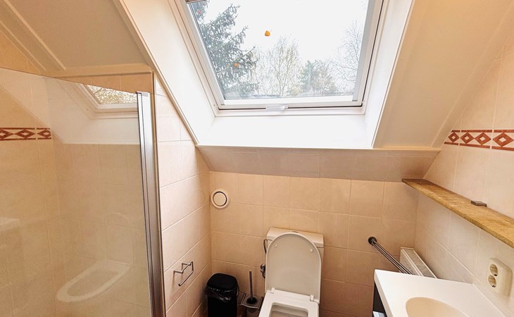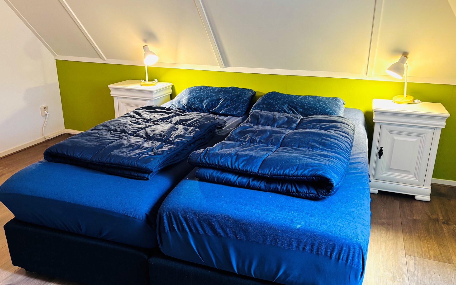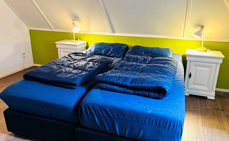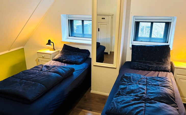 On the first floor there are two bedrooms with two single beds each. In addition, there is a bedstead for 2 children. On this floor there is also a bathroom with a shower, a washbasin and a toilet.