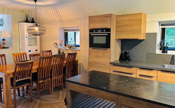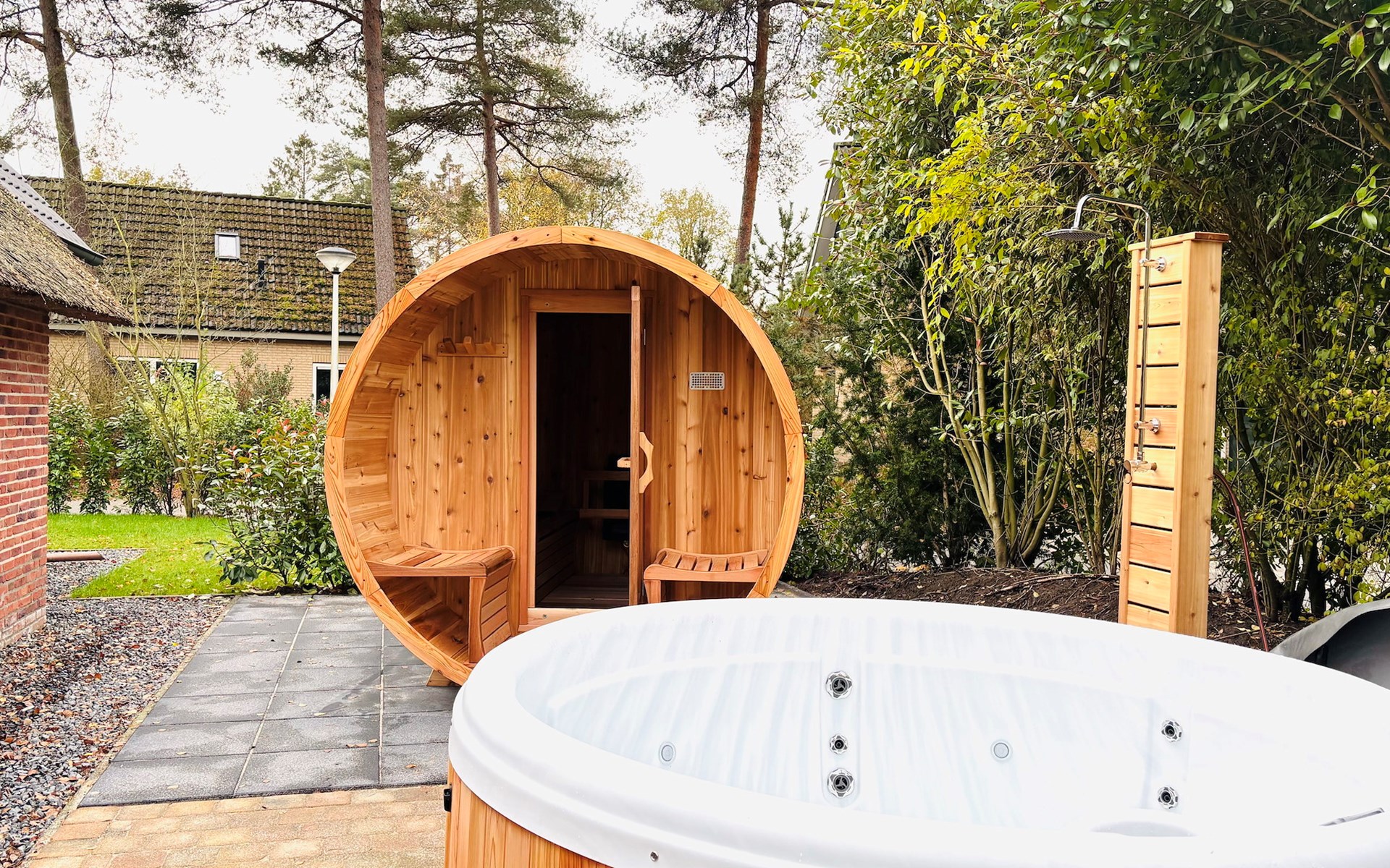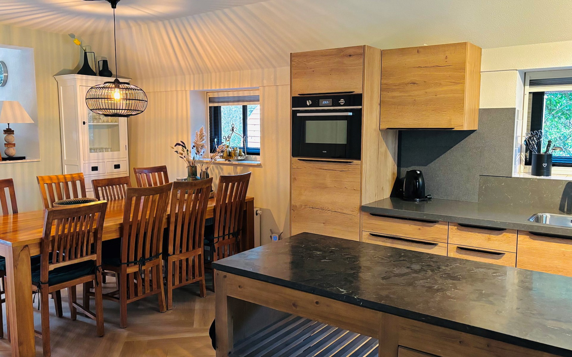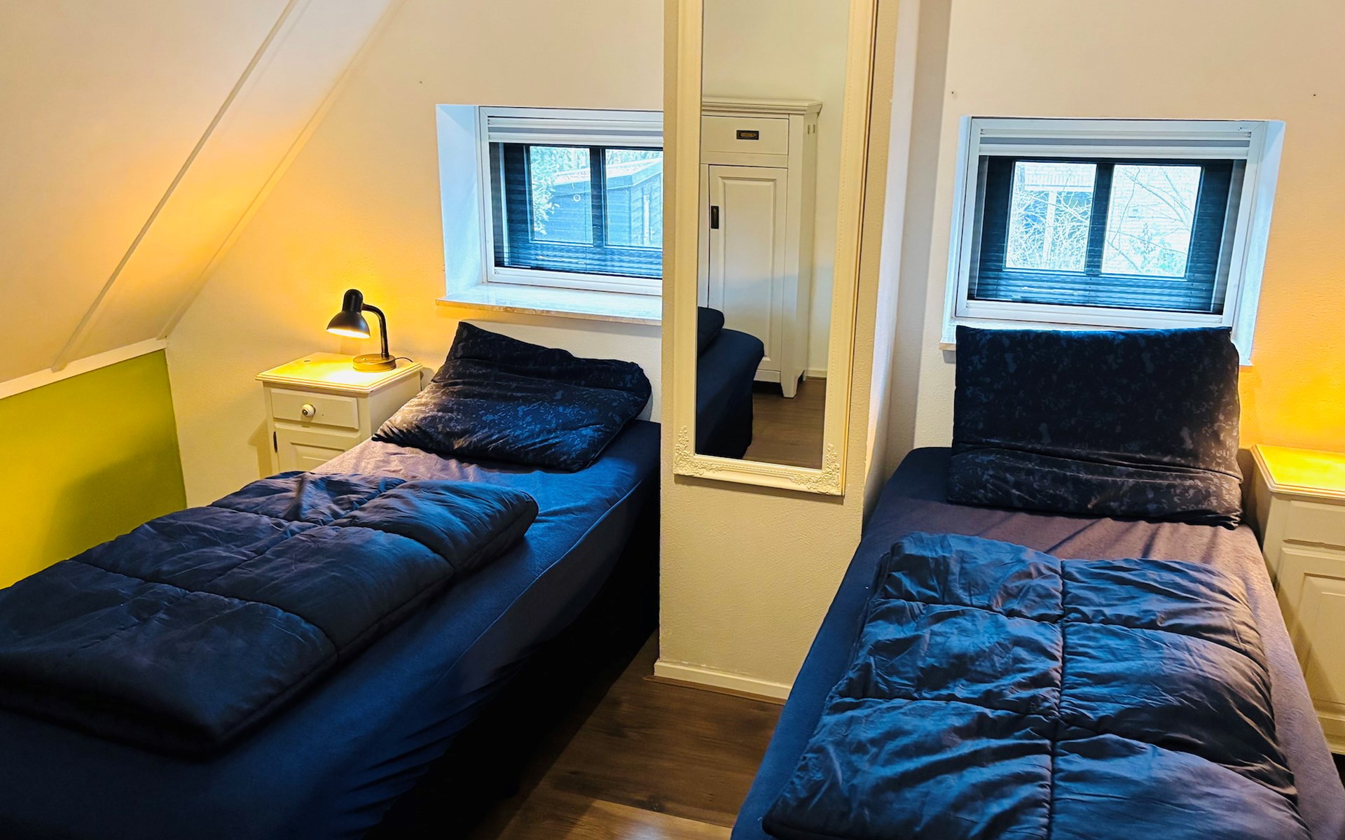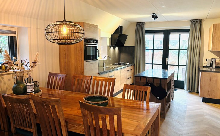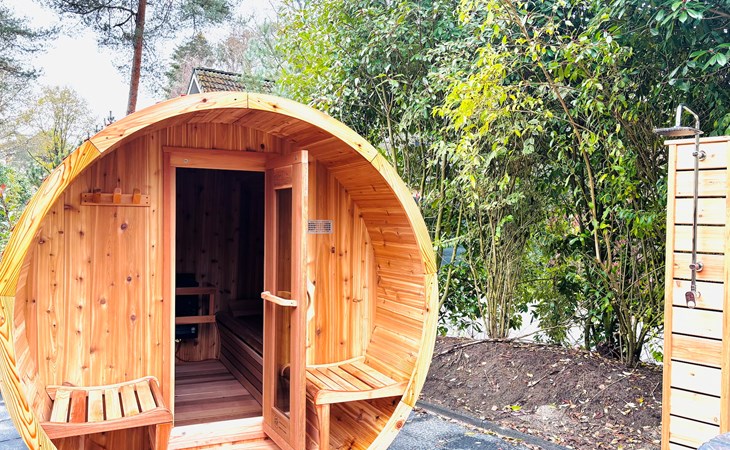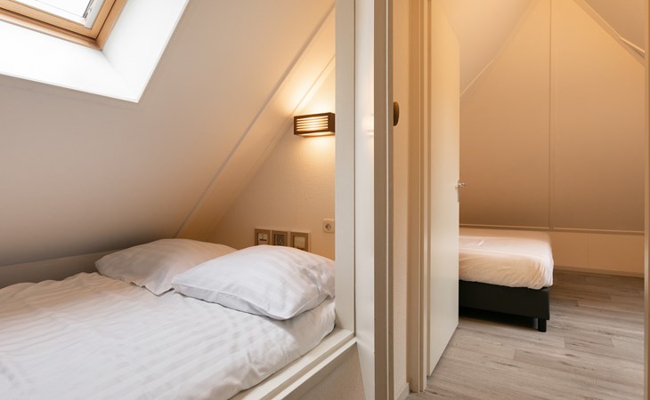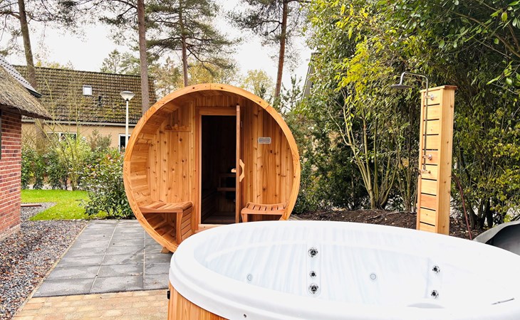 The Stuifzand Wellness Outdoor Bungalow Deluxe with Bedstead | 6+2 persons is suitable for up to 6 adults and 2 children. This detached bungalow at Summio Landgoed Het Grote Zand consists of two floors and has three bedrooms and two bathrooms.