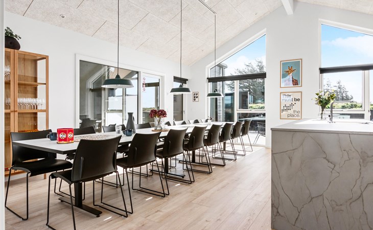 Located in the charming coastal town of Løkken, the house offers you a family holiday full of exciting activities. The spacious house has room for several families. The stylishly designed kitchen is perfect for cooking together, while the living area with its lovely details creates a cosy and inviting atmosphere. Make yourself at home on the comfortable sofa, play board games or enjoy relaxing film evenings. Or organise family tournaments in billiards, table tennis or darts.