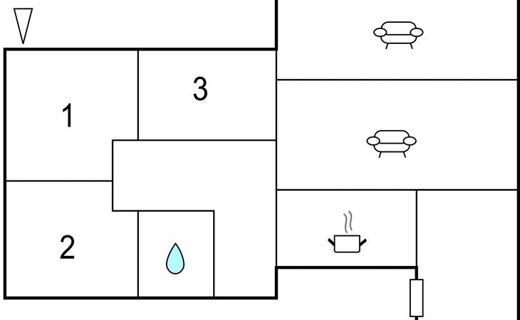 The living space of the house is divided into three bedrooms, a bathroom, a kitchen and a living area. The winter garden invites you to read or have the first cup of coffee in the morning.