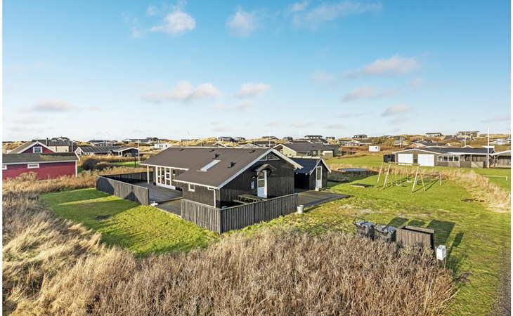 Step into this beautiful holiday home with your family and spend a relaxing holiday. Get together in the bright living room, play cards, enjoy a delicious meal or snuggle up on the sofa by a warming fire in the wood-burning stove and watch an entertaining film. The house is surrounded on all sides by a beautiful terrace, which is sheltered from view from the living areas. Enjoy a few hours in the sun or barbecue your favourite dishes in the evening. Meanwhile, your children can play, swing and jump on the playground equipment in the garden.