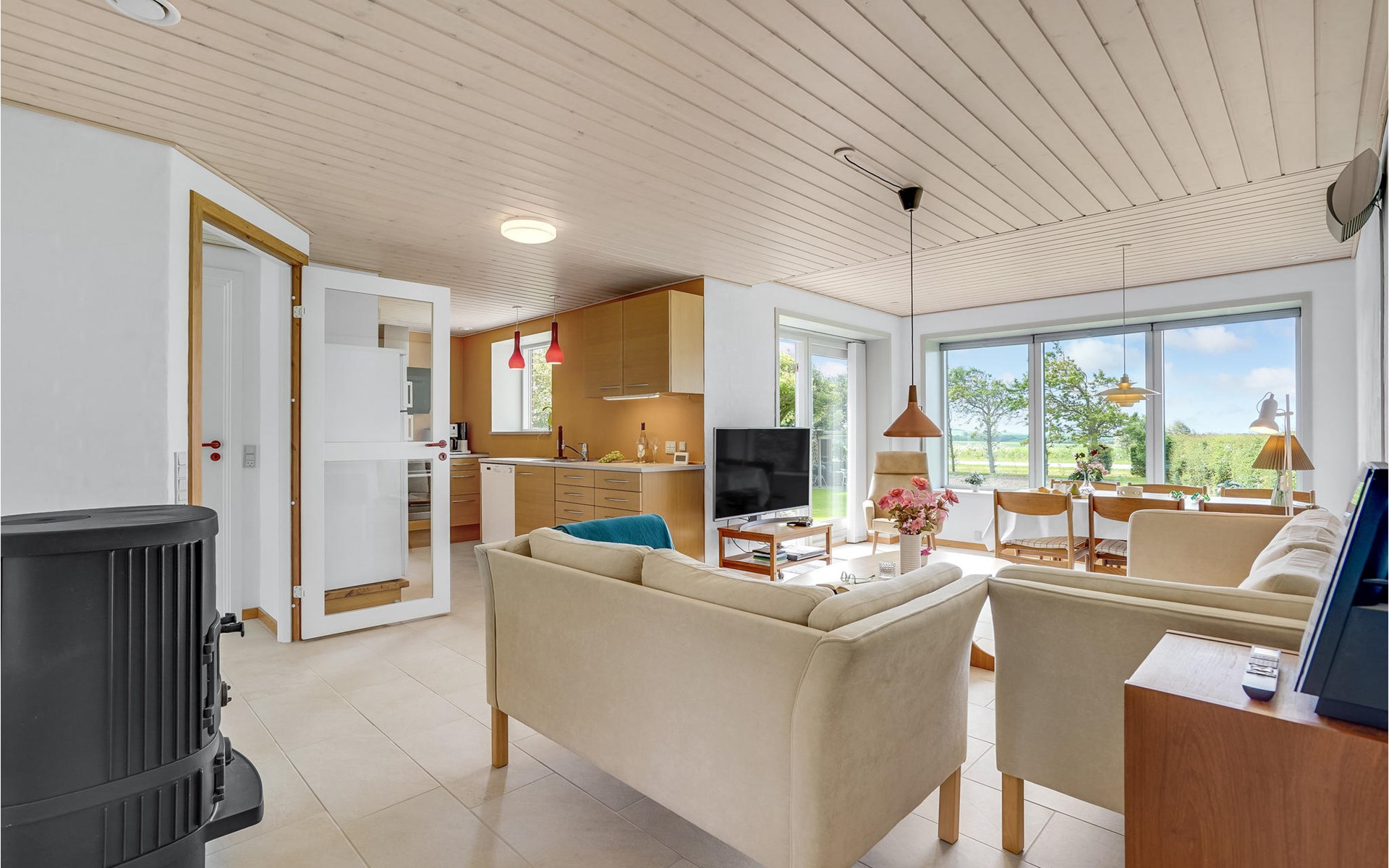 Have a great time with your loved ones in this renovated and inviting vacation home. With 3 bedrooms, the house can accommodate up to 6 people. 2 bedrooms have single beds, one bedroom has a double bed. 2 pets are also welcome here. From the dining area you have a beautiful view of the outdoors and in the living room the fireplace stove provides coziness.