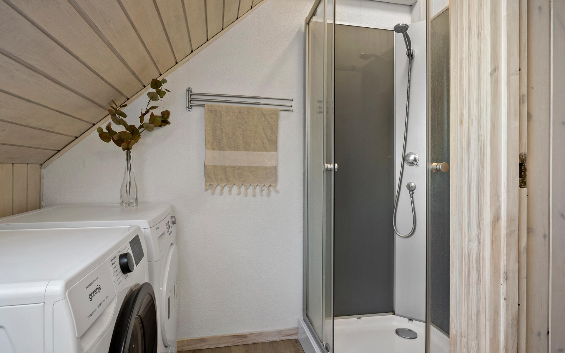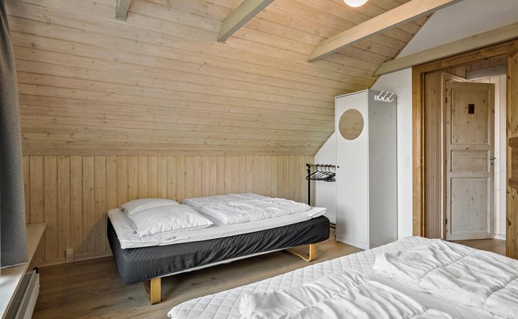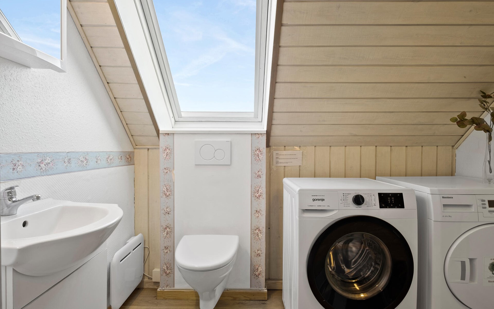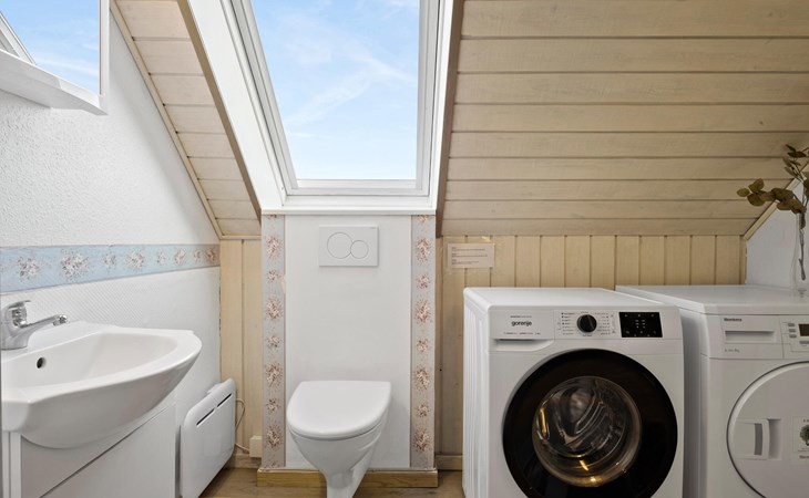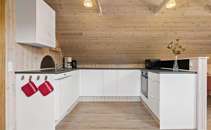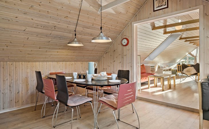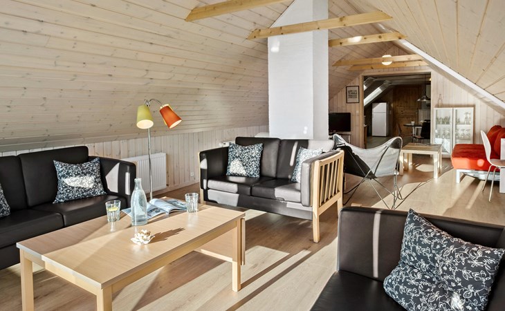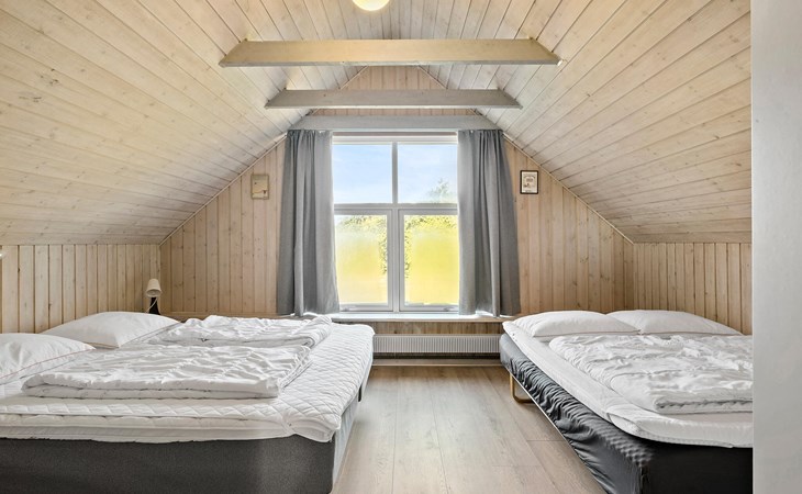 Spend a relaxing holiday in the bright apartment, which welcomes you above a farmhouse in a quiet, rural setting just a few kilometres from Blokhus beach. Enjoy the beautiful view outside as soon as you wake up and let your gaze wander over the surroundings through the gable window after an active day on the inviting sofas. Use the cosily furnished accommodation as a base for wonderful days at the beach and exploring the surrounding area. The infrared sauna and massage table offer great opportunities for soothing relaxation.