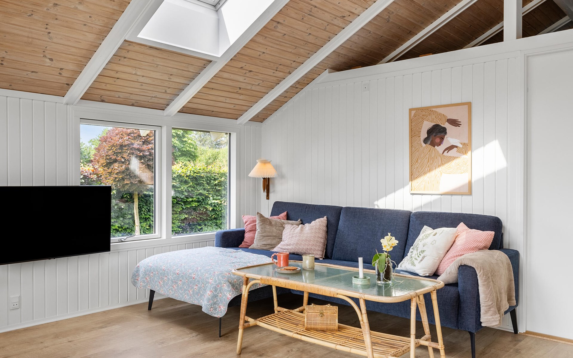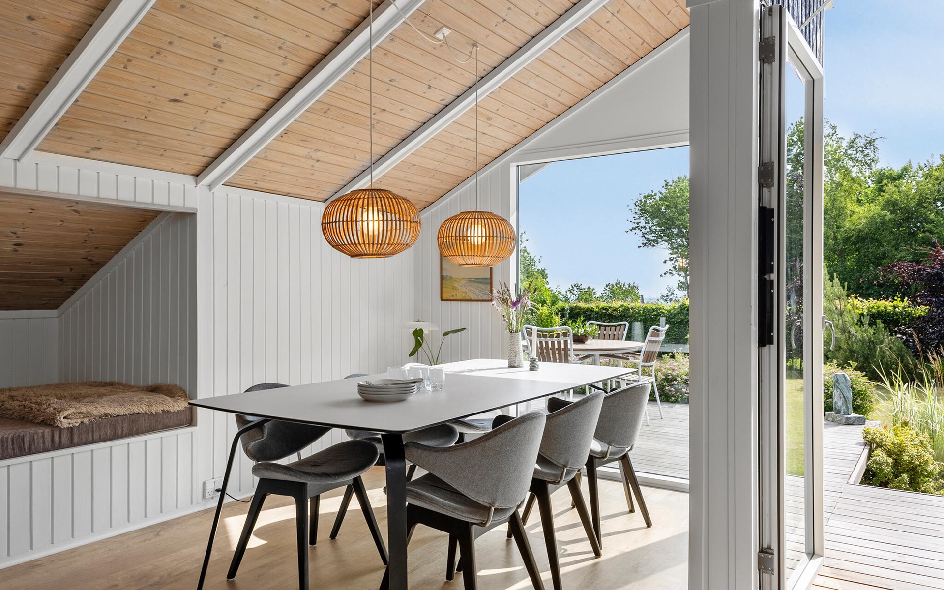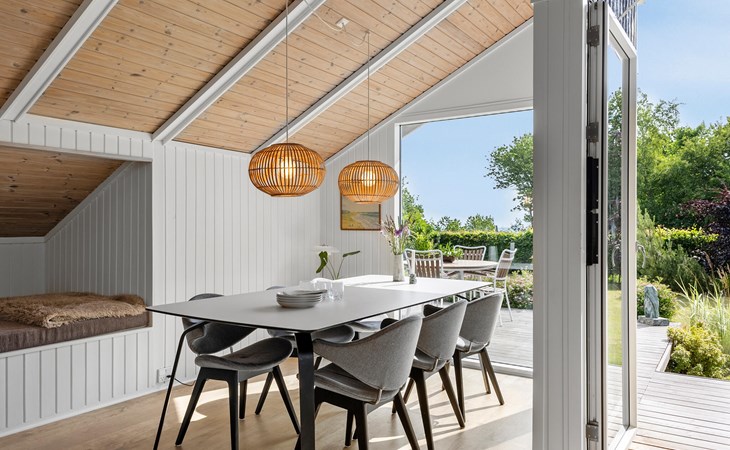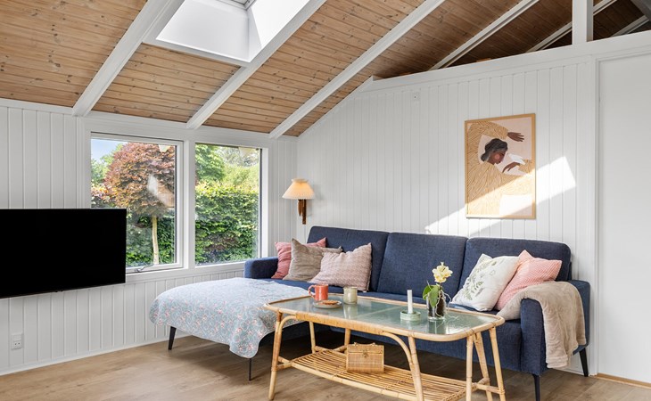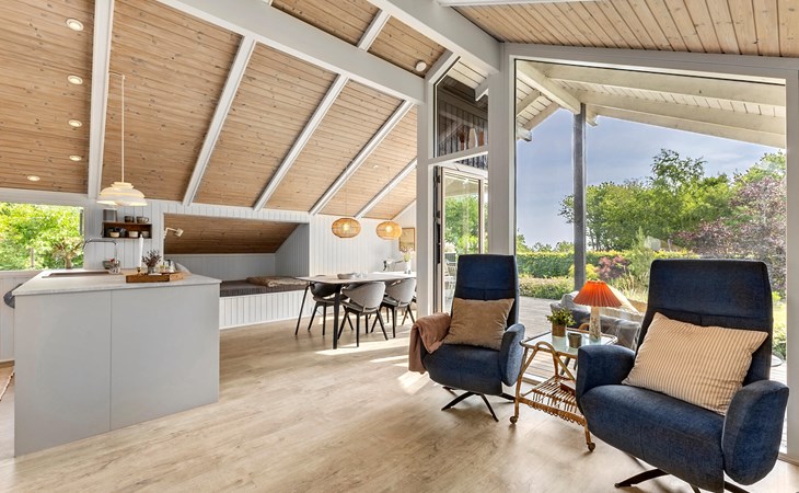 On the gentle, Danish Baltic coast you and your family will find this beautiful and well-equipped vacation home. The interior is open all the way to the gable, which creates a spacious, pleasant atmosphere. The living area with several window fronts offers various corners where you can relax while looking out into the garden.