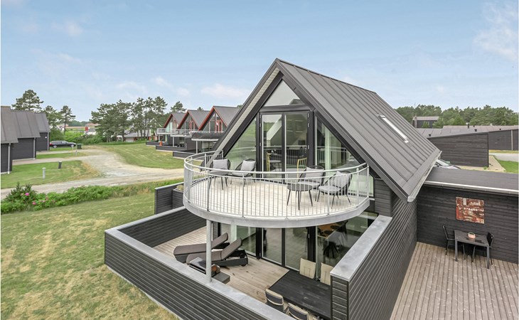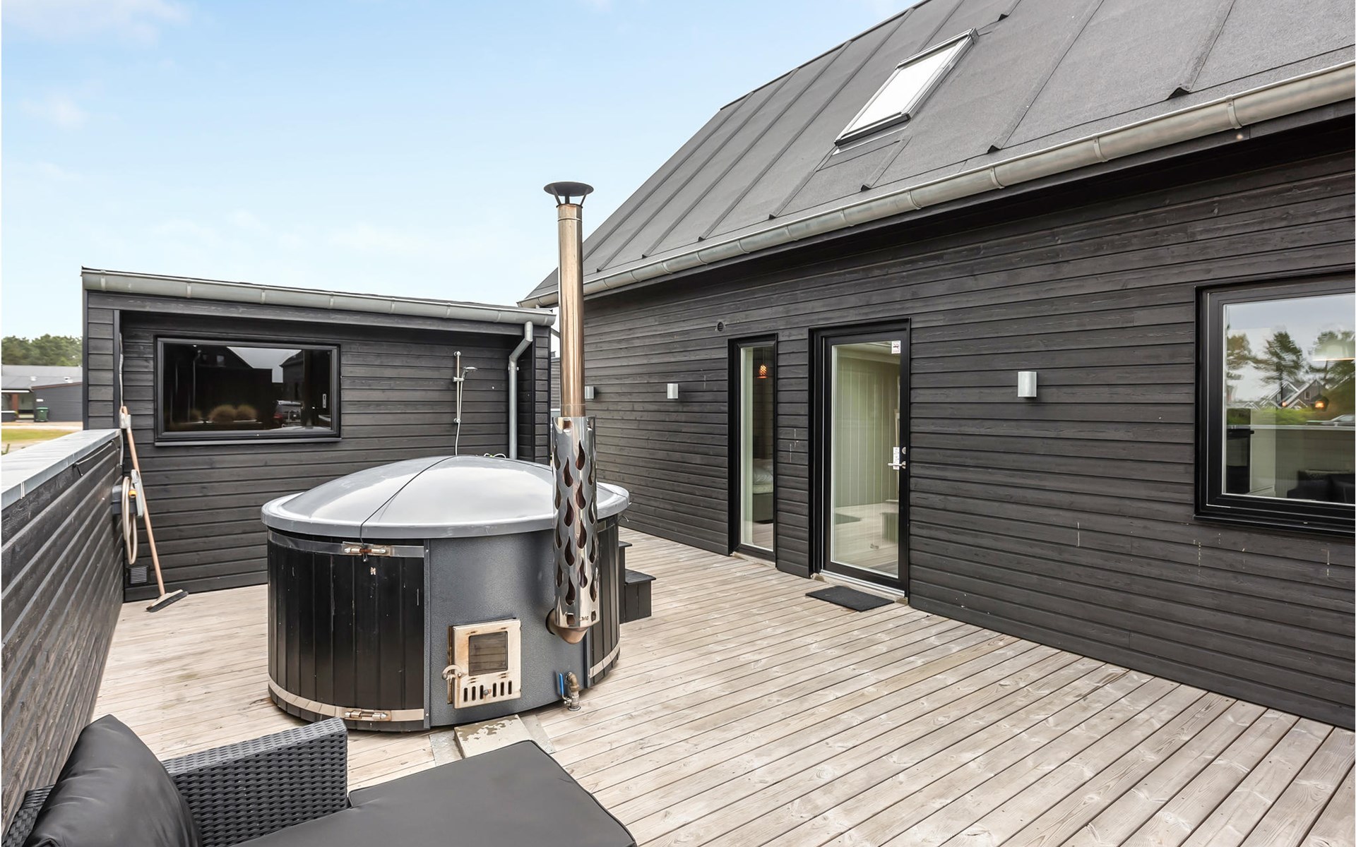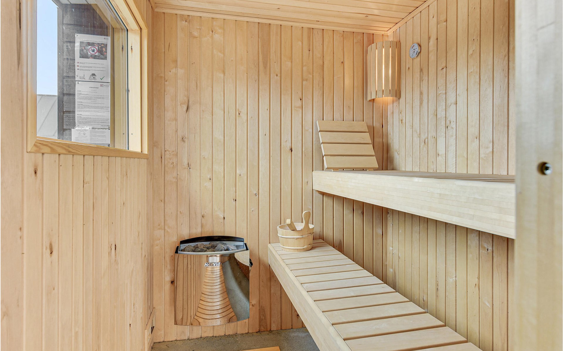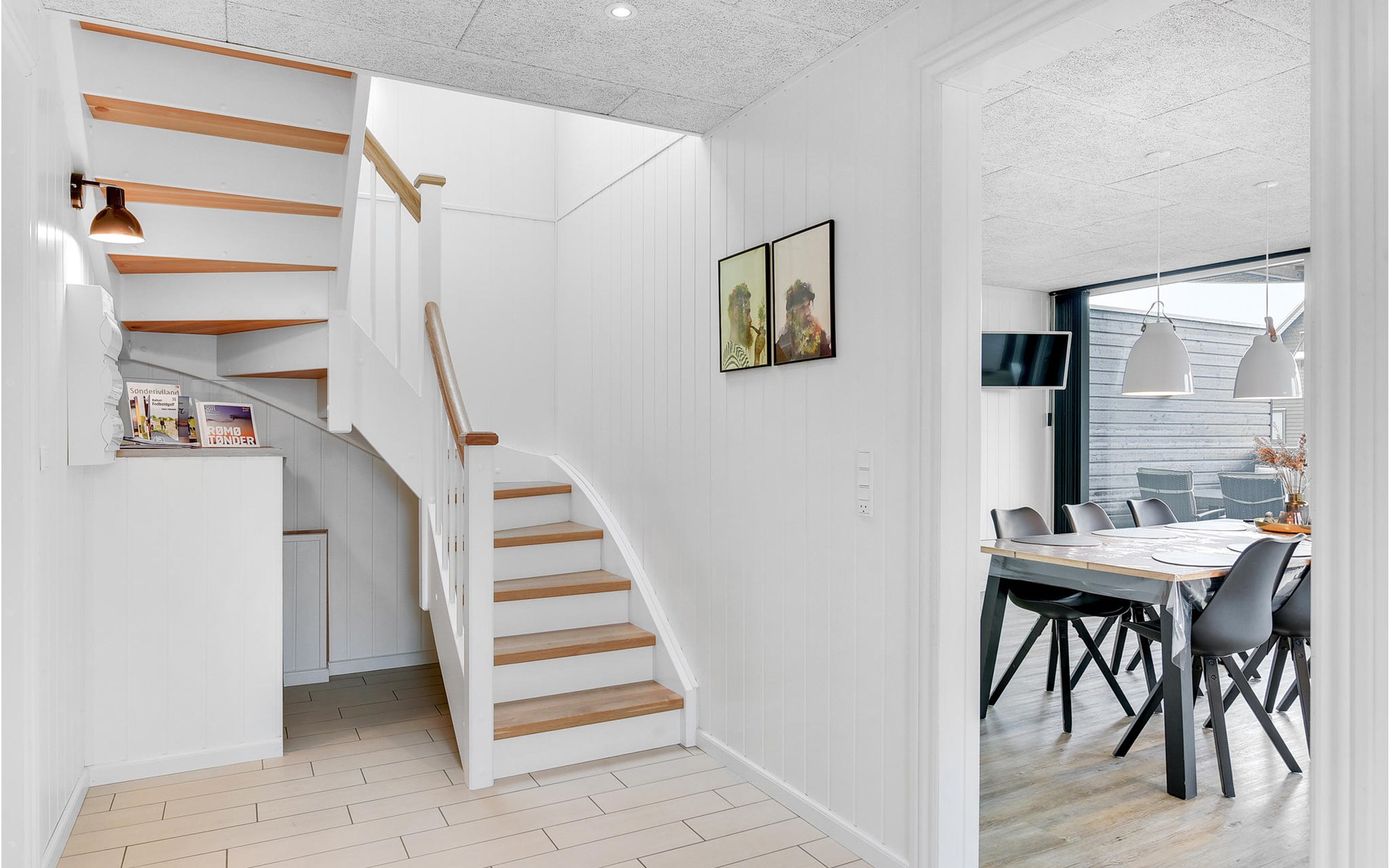 Upstairs is a living room with comfortable sitting area, TV and a balcony. Outside, from the terrace and balcony, you can see the Rømø golf course and there is a bathing buoy for a different kind of outdoor bathing. The bathing buoy, connoisseurs also call it Wildmarksbad, you can use all year round. Afterwards you can make a detour to the sauna, because it is placed right next to the bathing buoy.