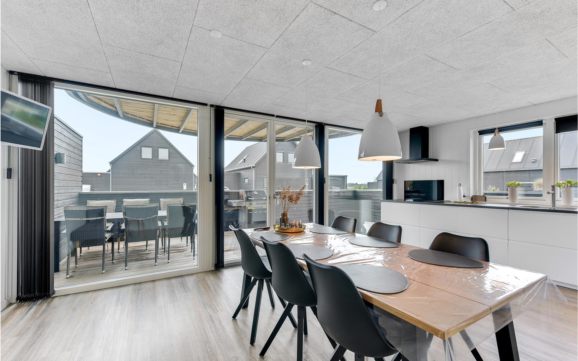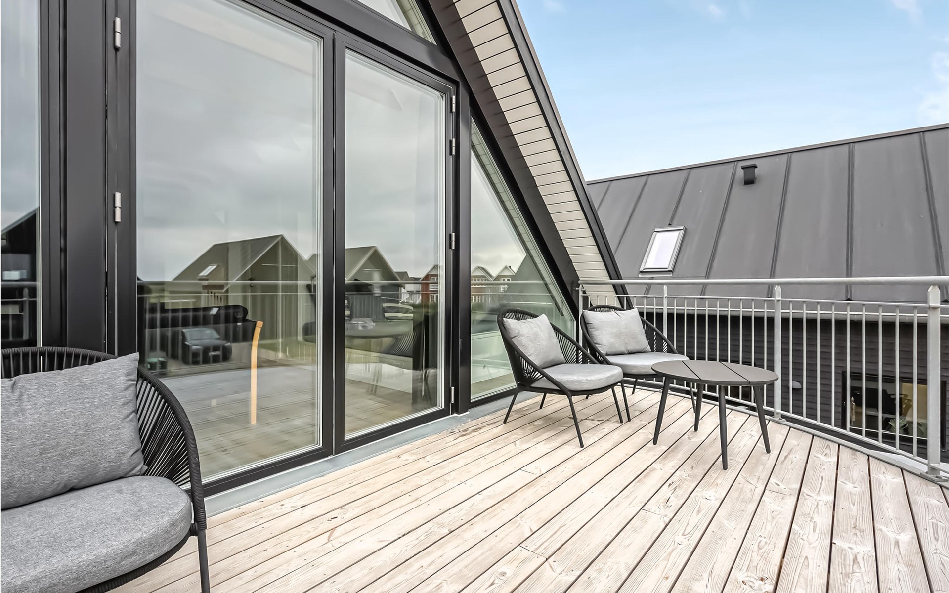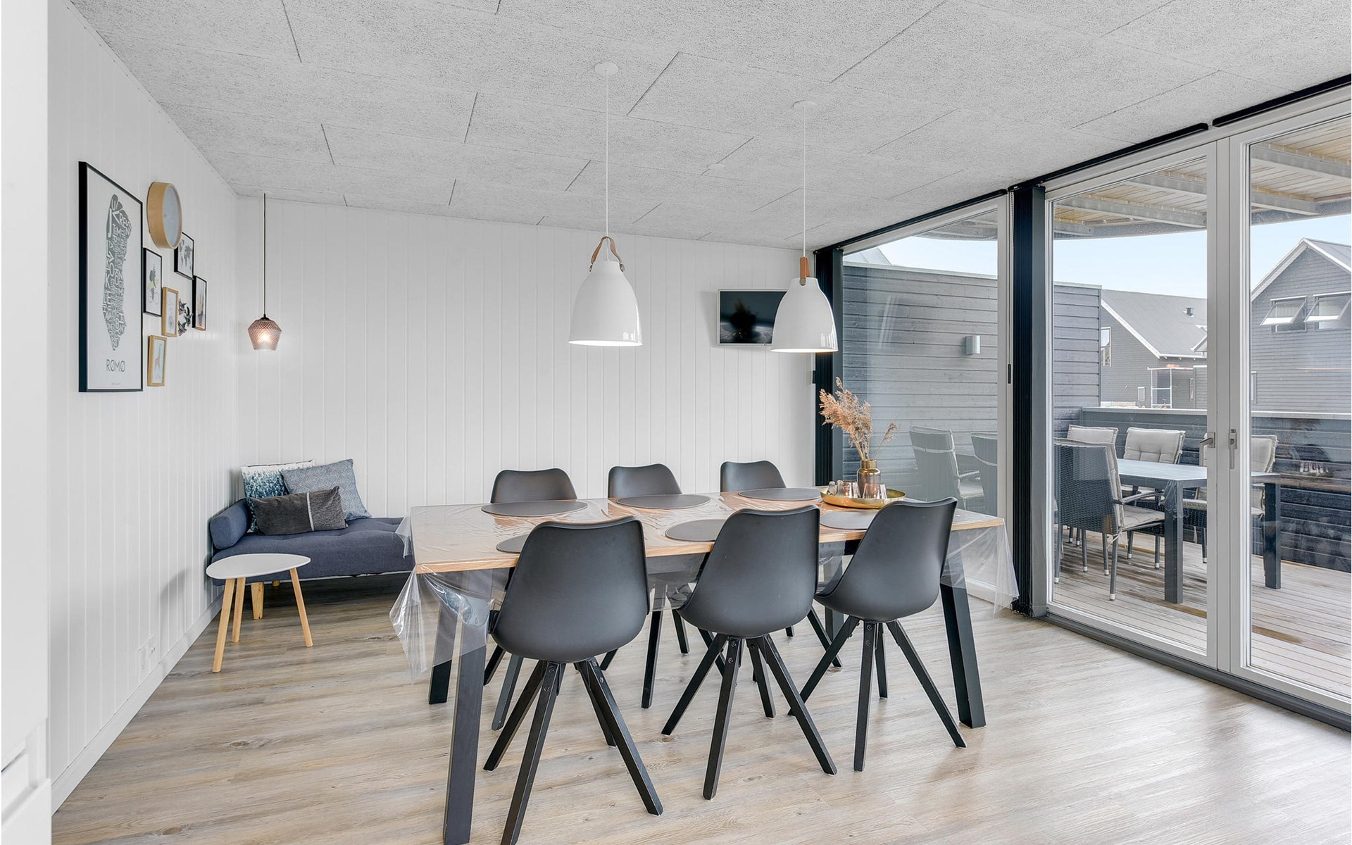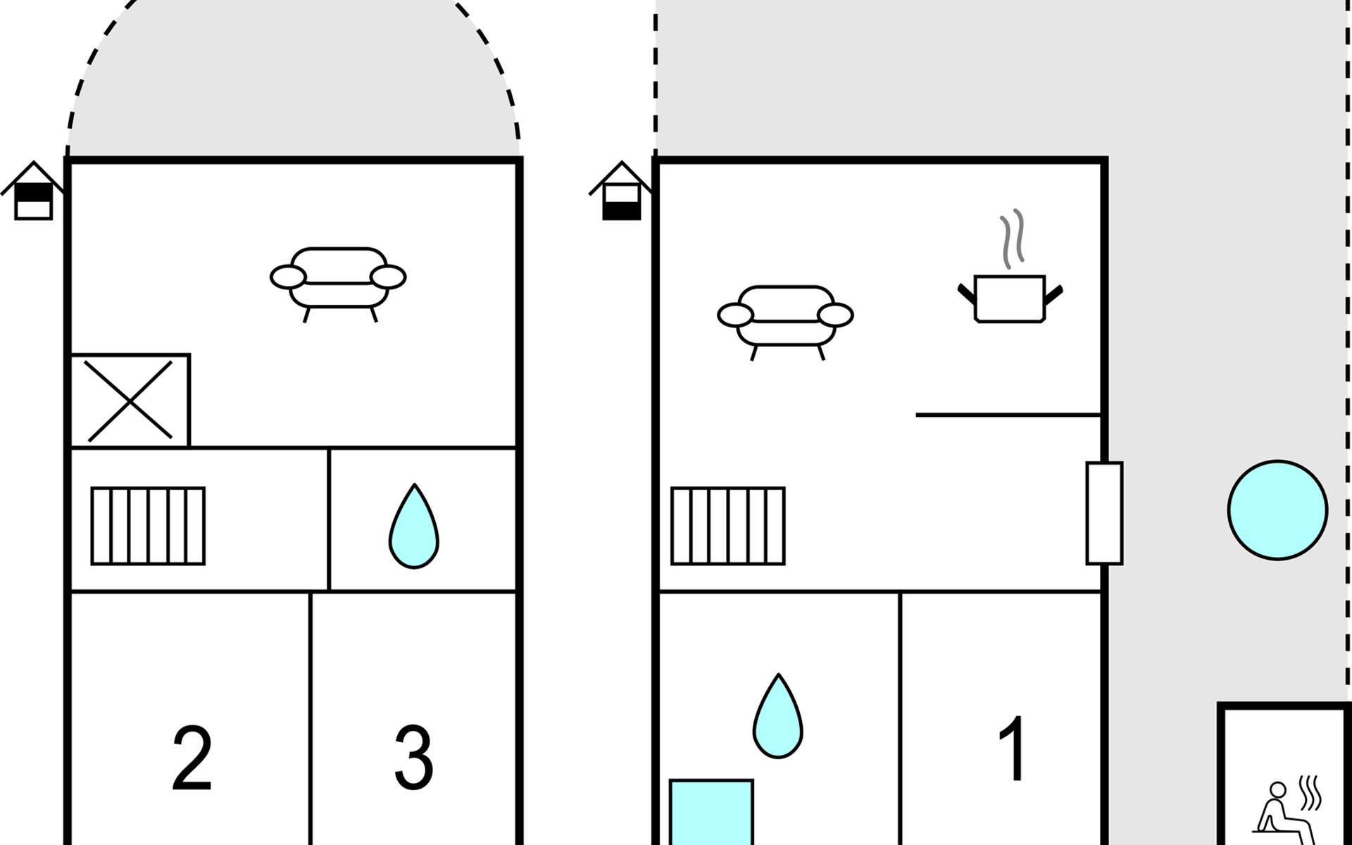 Upstairs is a living room with comfortable sitting area, TV and a balcony. Outside, from the terrace and balcony, you can see the Rømø golf course and there is a bathing buoy for a different kind of outdoor bathing. The bathing buoy, connoisseurs also call it Wildmarksbad, you can use all year round. Afterwards you can make a detour to the sauna, because it is placed right next to the bathing buoy.