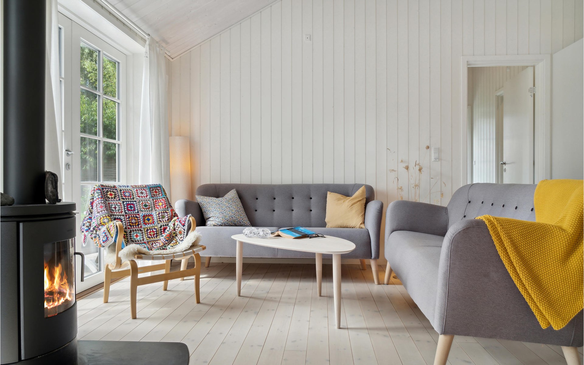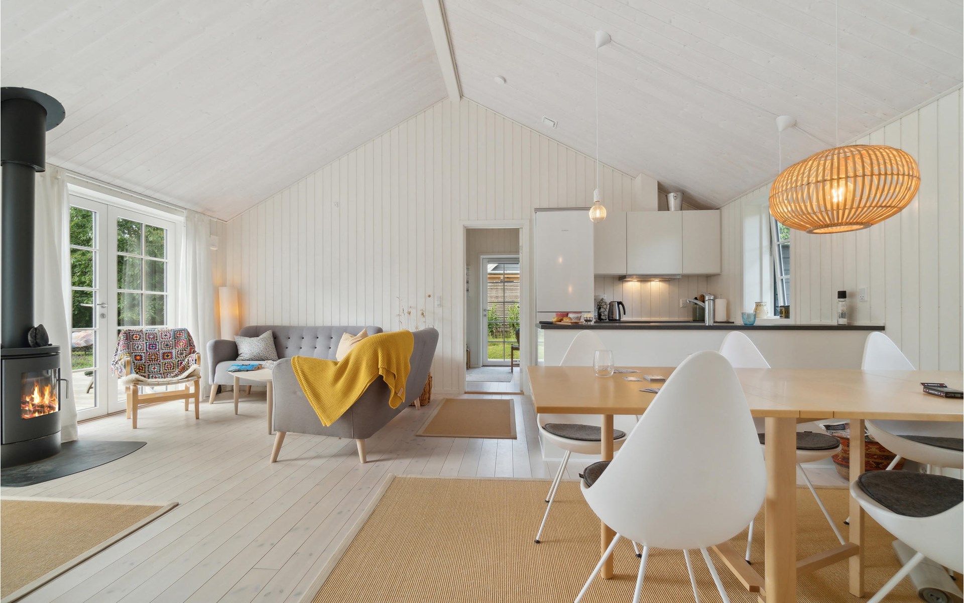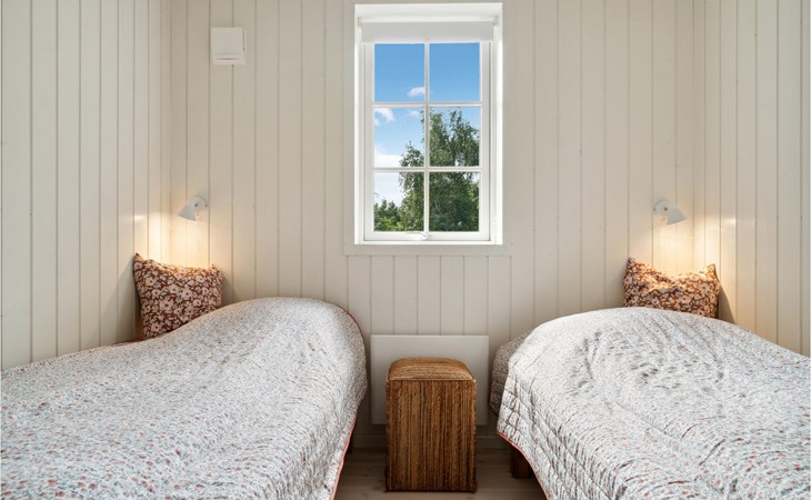 Welcome to this magnificent vacation home that welcomes you Smidstrup Strand with bright rooms and quality interiors. It is the ideal place to escape your hectic everyday life with your family and enjoy your vacation time together. In addition to the cozy bedrooms, you will have the family's central meeting place in the open-plan living room. The light color scheme, the fireplace and individual color accents of the furniture create a great feel-good atmosphere. Step from the living room through the large transom windows onto the expansive patio, which can become your second outdoor living room. Settle in here with a glass or lie in the sun and enjoy the blossoms and the scent of the wild meadow.