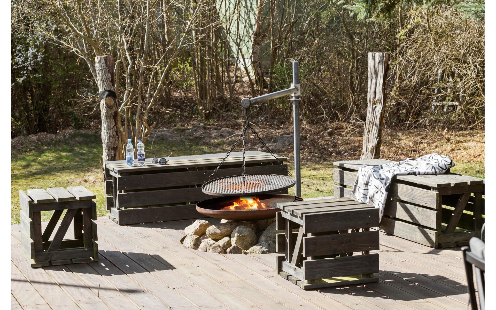 Use the spacious garden for sunny reading sessions, games with your children or simply to take a deep breath. Relax on one of the sun loungers or end the day by the outdoor fire pit.