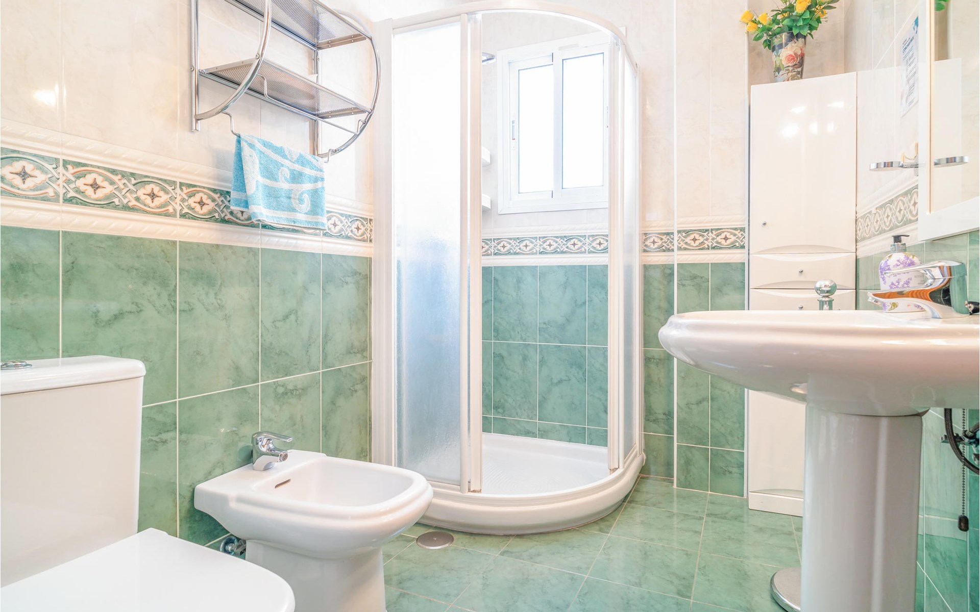Make yourself comfortable with your loved ones in this inviting house that awaits you in Nerja. You will immediately feel at home in the bright rooms. Tiled floors, walls with colorful mosaics and harmonious wall colors give the vacation home its cozy charm. Gather the whole family on the cozy sofas in the living area for a game night, or watch a movie together here.