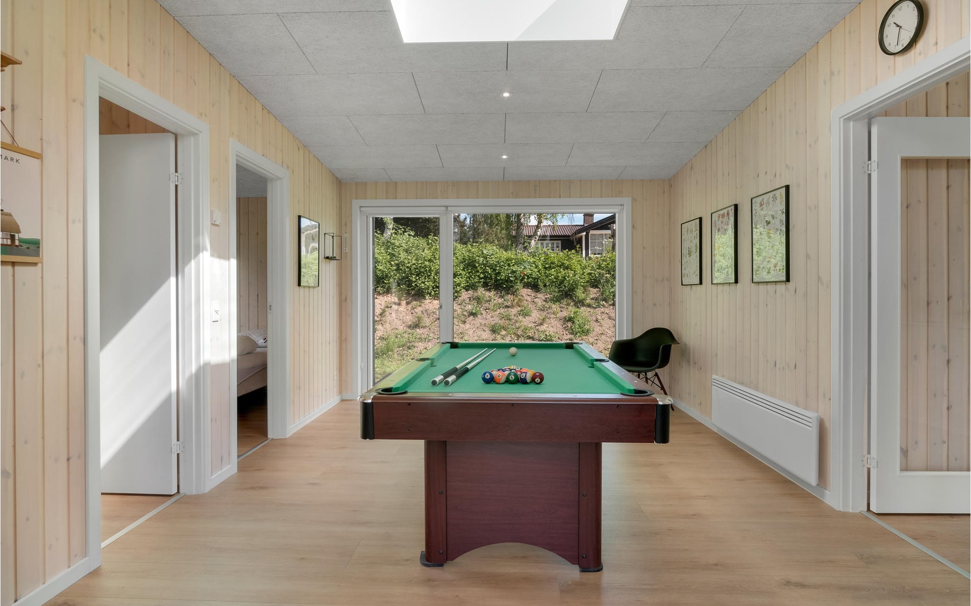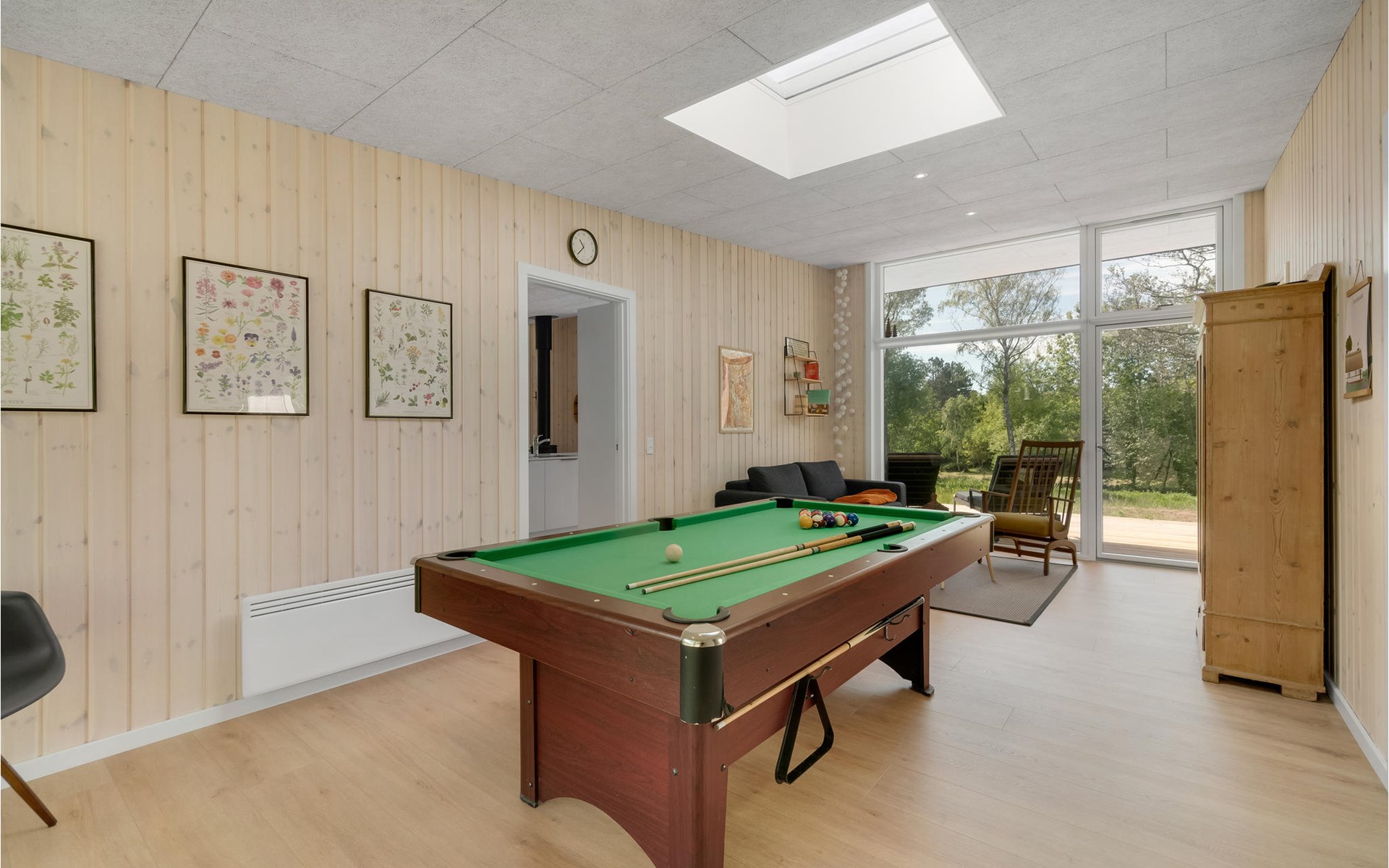 The modern house welcomes you with cozy and light-filled living rooms and bedrooms. Arrive and relax on the sofas in the living room, if you feel a little chilly, you can stoke a warming fireplace or make a warm tea in the kitchen.Spend entertaining evenings playing games, whether billiards or board games. Should you desire a little more peace and quiet, you can sweat it out in the sauna.
