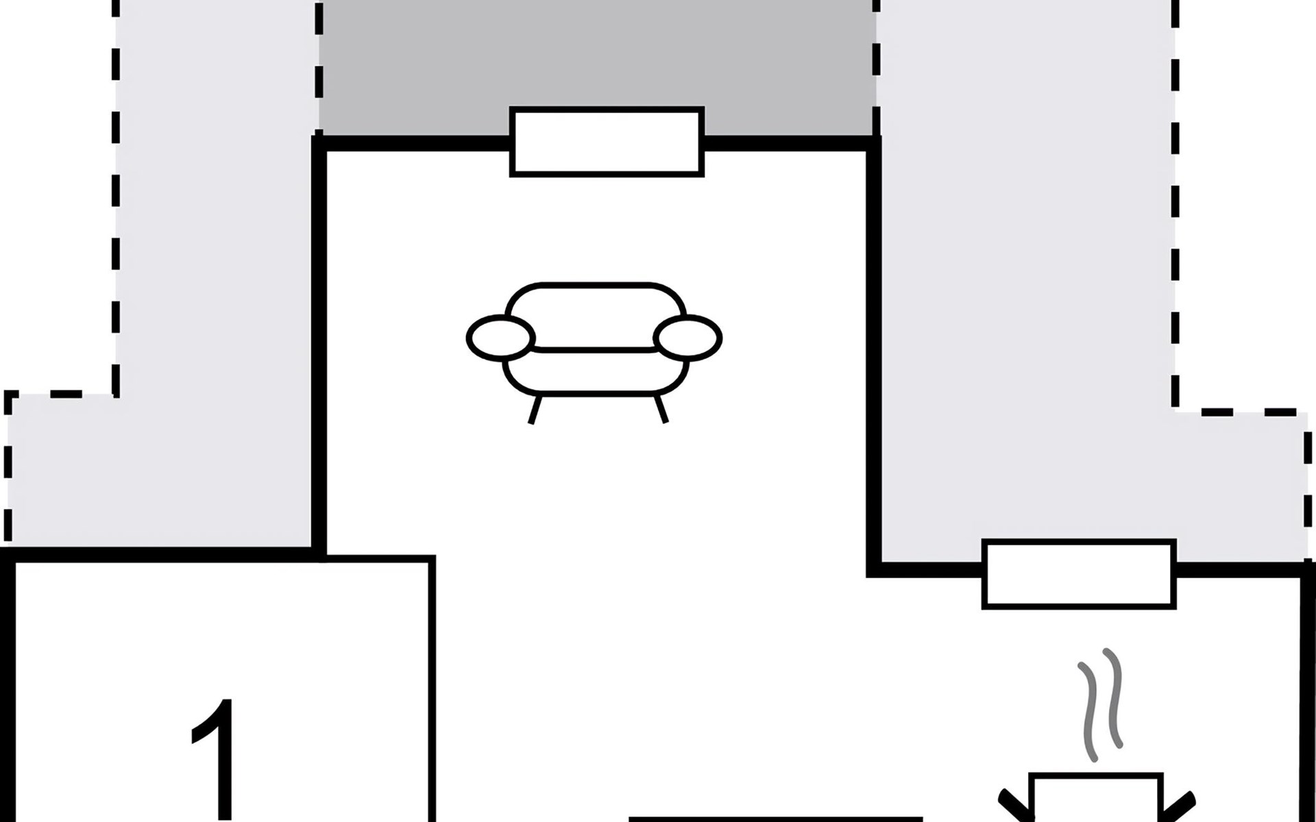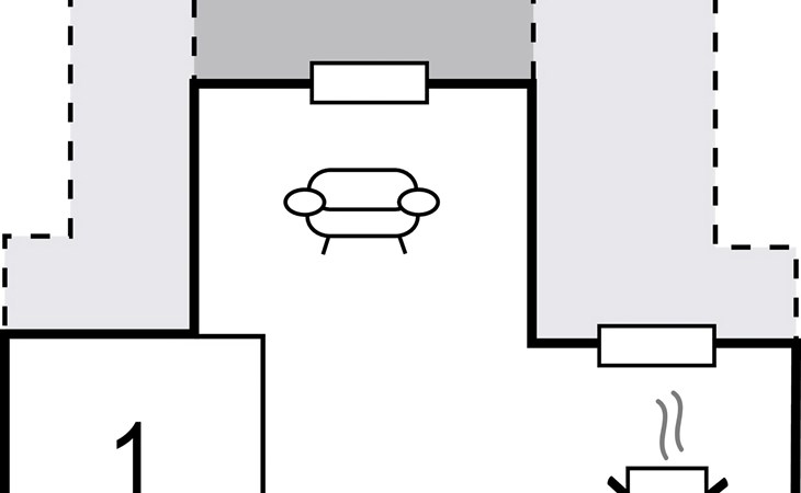 The house consists of 3 bedrooms, 1 bathroom, a living room with sofa and TV and a kitchen with dining area.