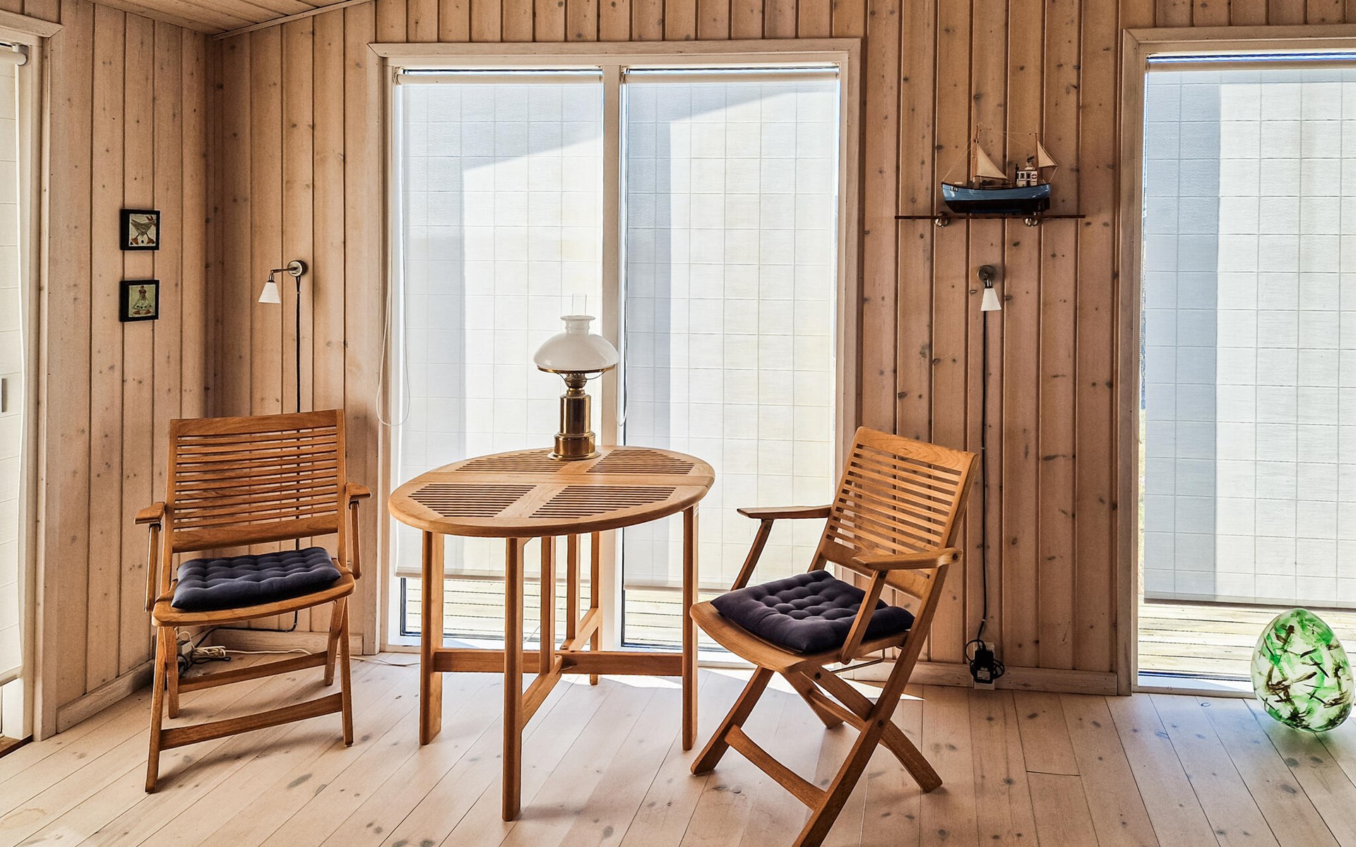 The surrounding wooden terrace offers you a fantastic view of the surrounding dune landscape and the sea. Relax here sheltered from the wind behind the glass wall and let your gaze wander. Spend cosy evenings in the open air, have a barbecue together or simply enjoy the peace and quiet in the midst of nature.