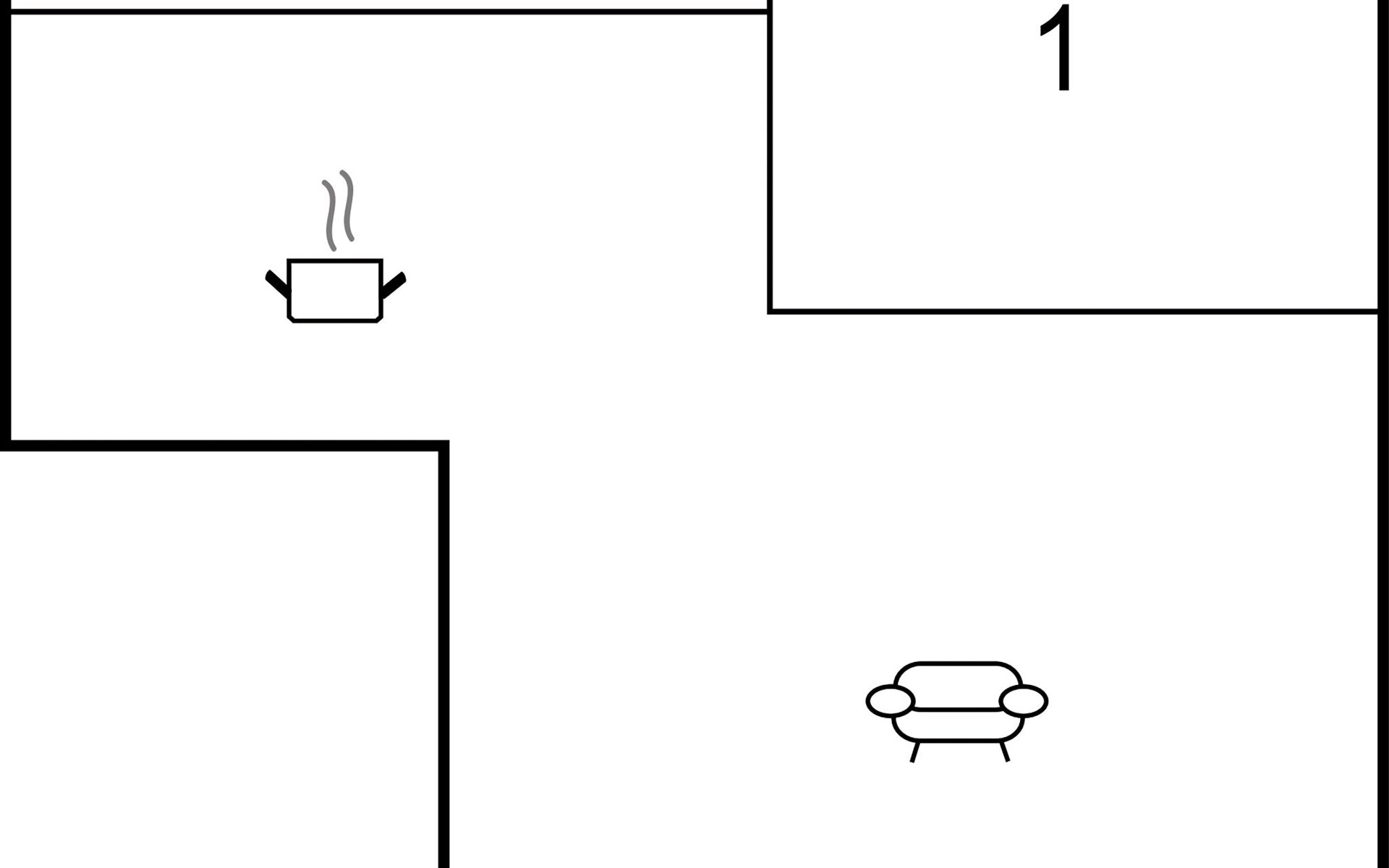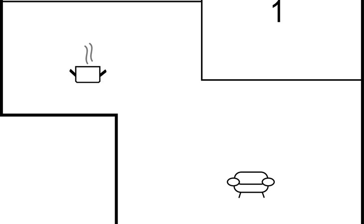 The house has a kitchen in open connection with the living room with wood stove and dining area, 1 bedroom and toilet. More sleeping places possible in the outbuilding. Around the house you will find several good terraces, both open and covered, where you can always find a place in the sun with a good book.