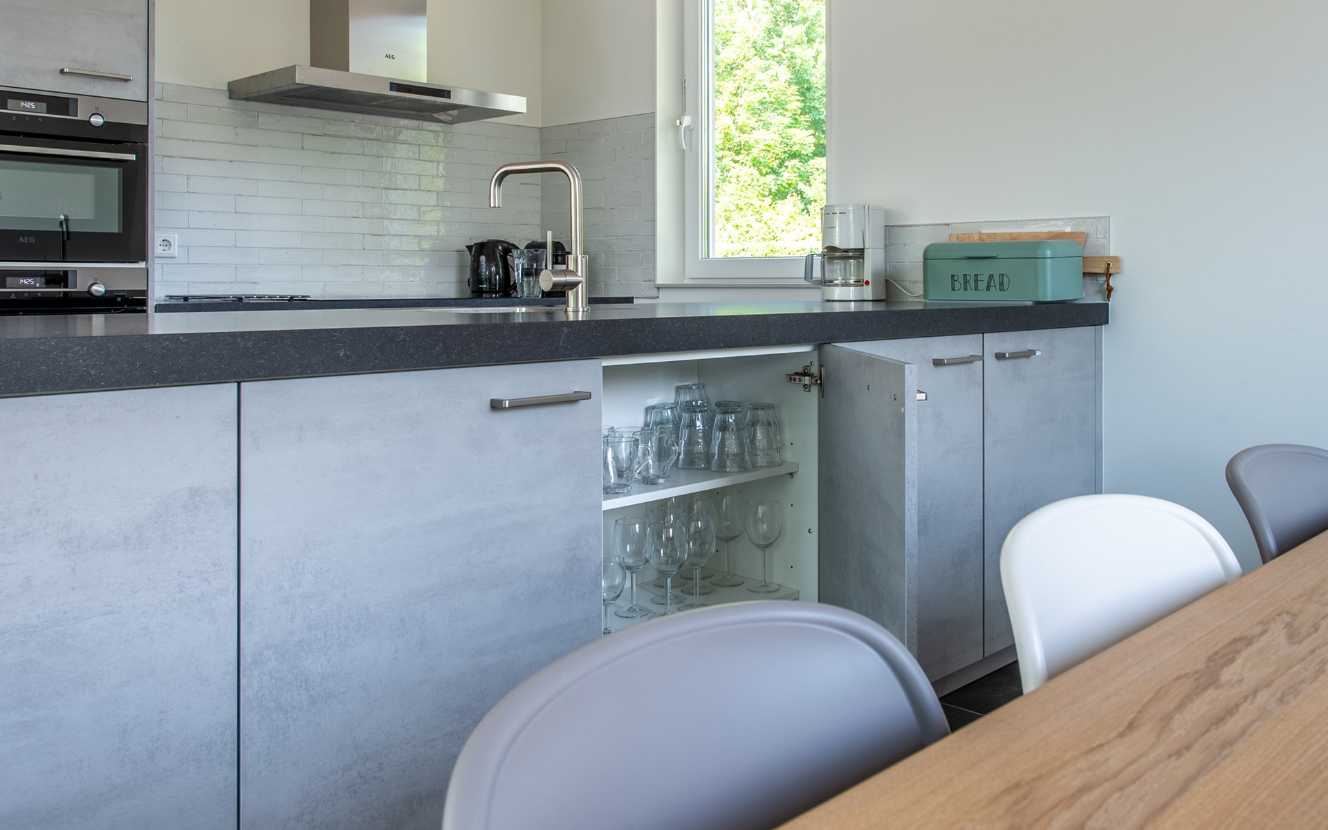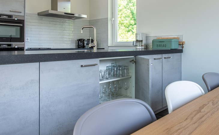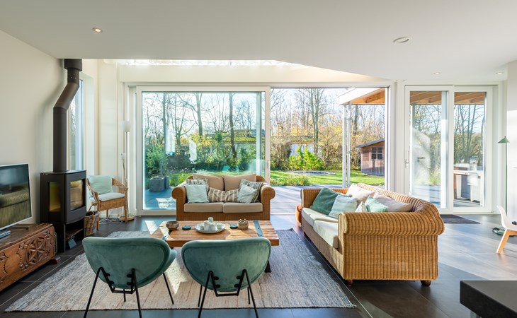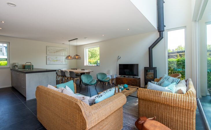 After entering the house, you enter a spacious hall with guest toilet. From the hall, you reach the living room with sitting area with smart TV. The wood-burning stove provides extra atmosphere and cosiness in the evenings. The living room also houses a spacious, fully equipped kitchen with a fridge-freezer, separate oven, combination microwave, induction hob and dishwasher. Opposite the kitchen is a spacious dining table for extensive dining or working.