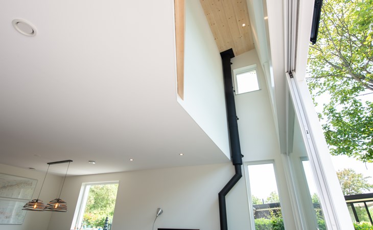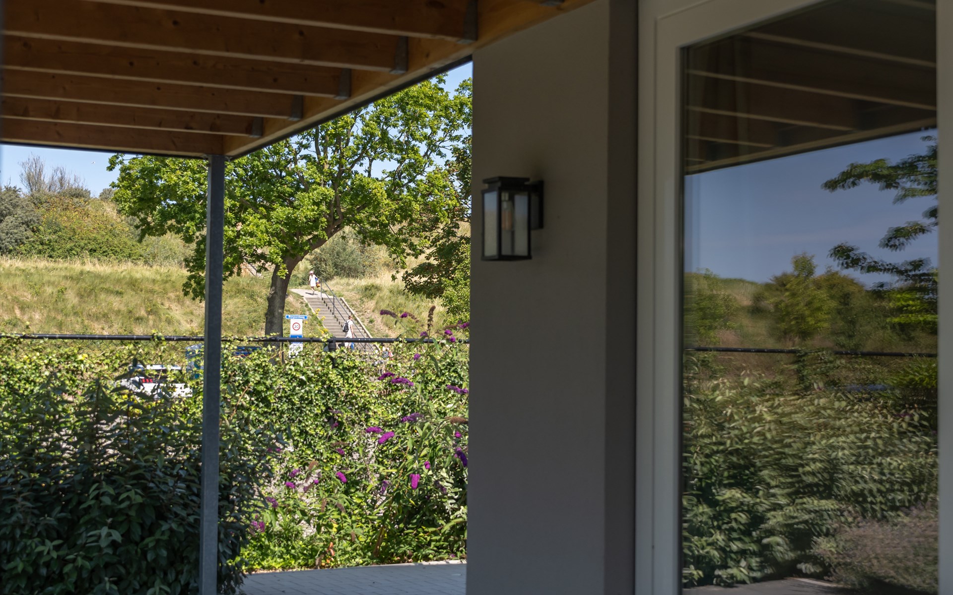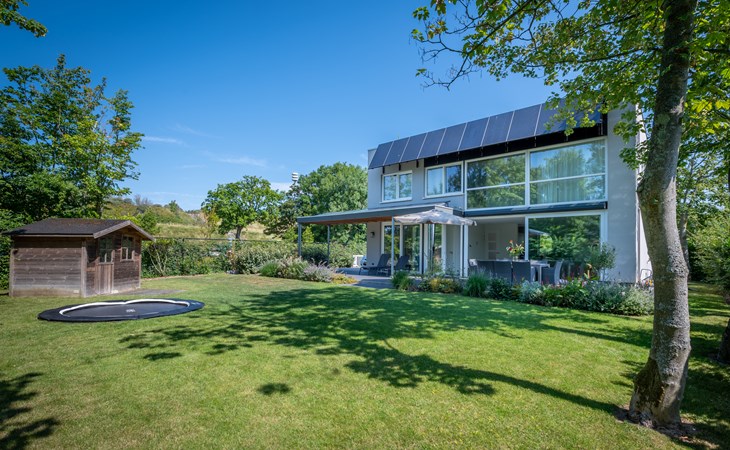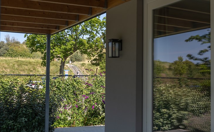 This holiday home has been designed to be energy-efficient and environmentally friendly. All installations are supplied with electricity generated by its own solar panels and an air source heat pump. In addition, heat is extracted from the exhaust air to be added to the fresh air supplied outside. There is optimum insulation of floors and outer walls and the house has a sedum roof and triple glazing. Two sliding doors are fitted with pleated screen doors and all tilt-and-turn windows are fitted with inset mosquito nets. There is no gas connection available.